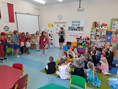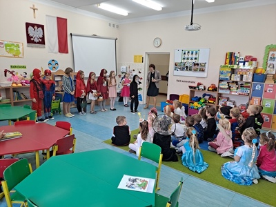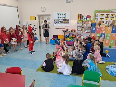 Na koniec wykonały prace plastyczne. Dzień ten przypomniał wszystkim, jak ważne są bajki w życiu każdego dziecka. Przeniesienie dzieci w świat bajek sprawiło przedszkolakom dużo radości.