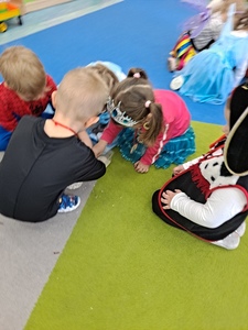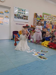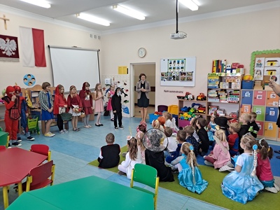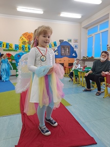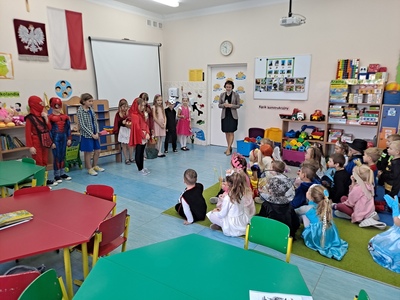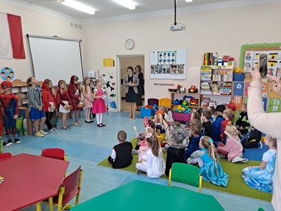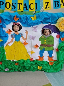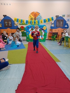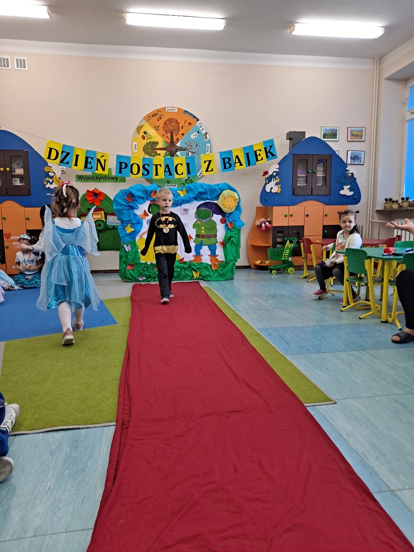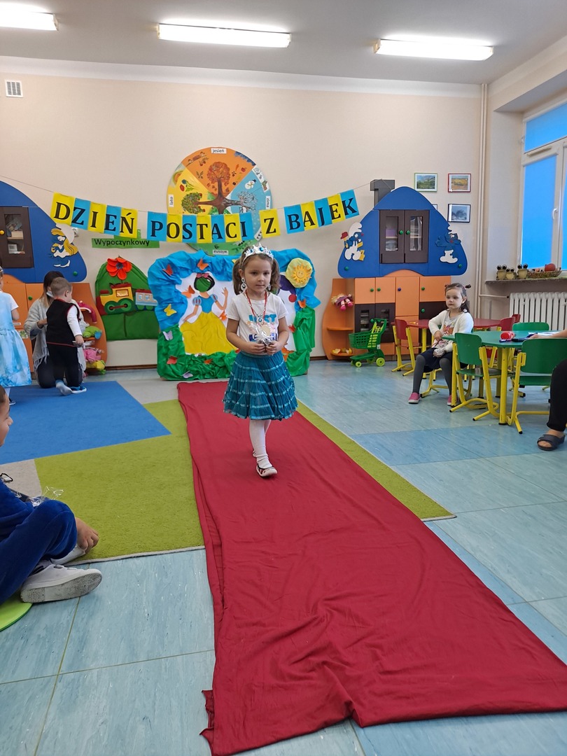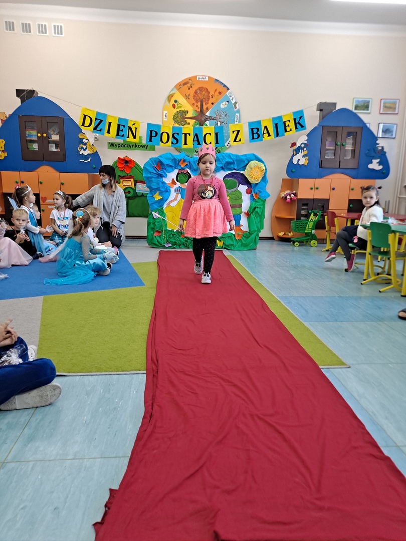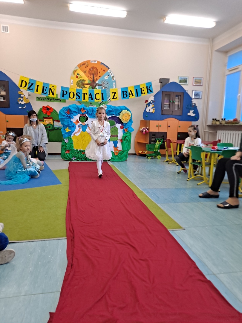Odbył się również pokaz postaci bajkowych. Tym razem idąc po „czerwonym dywanie” dzieci prezentowały swoje stroje – swoje przebranie. Wszyscy uczestnicy byli nagradzani gromkimi brawami. By upamiętnić ten wyjątkowy dzień dzieci robiły sobie zdjęci w fotobudce, dziewczynki jako Królewna Śnieżka, a chłopcy jako krasnoludek.