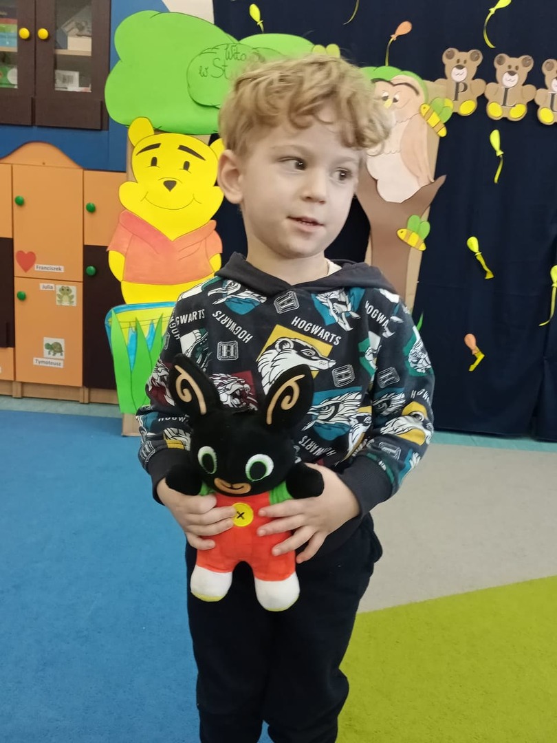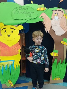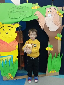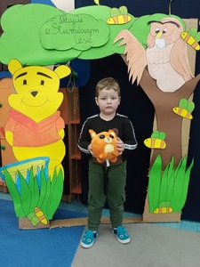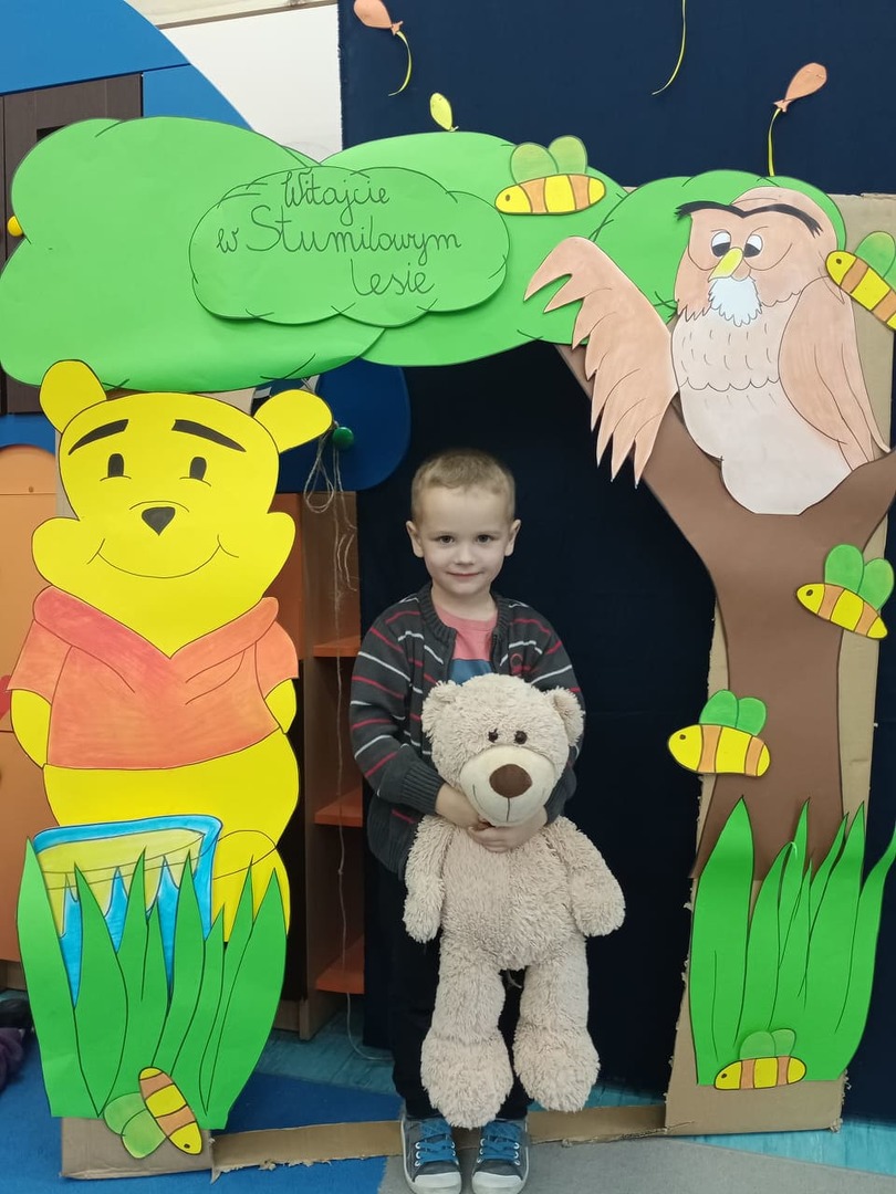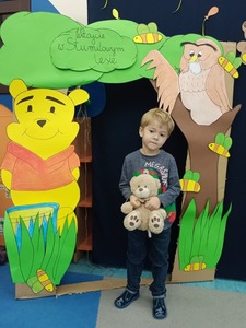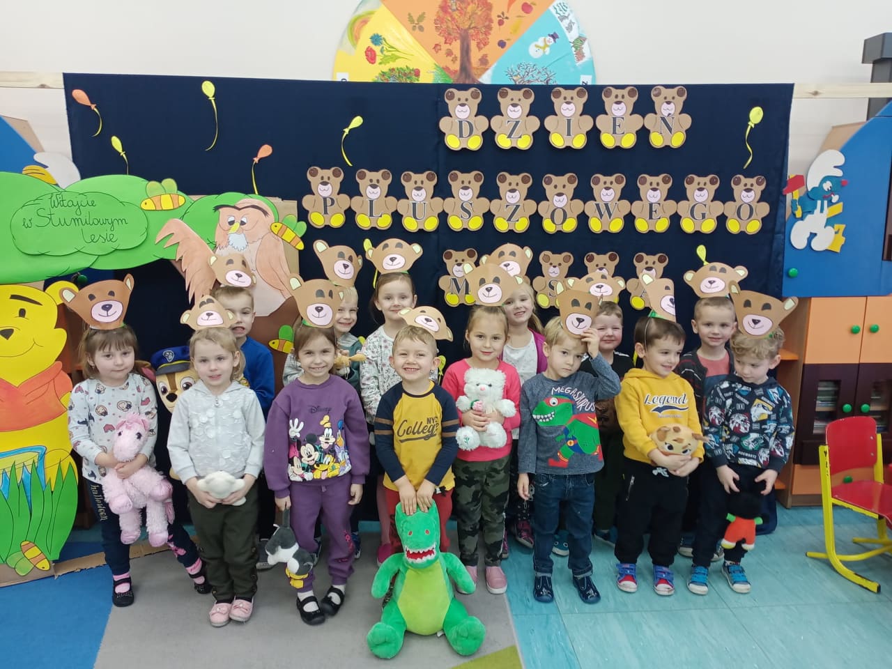 W naszym przedszkolu 25 listopada królował Pluszowy Miś. Dzieci w wyjątkowo uroczysty sposób świętowały Dzień Pluszowego Misia. Pluszowe Misie najlepsi przyjaciele dzieci i niezastąpione przytulanki tego dnia przywędrowały do przedszkola razem ze swoim właścicielem. W tym wesołym dniu na dzieci czekało wiele atrakcji. Zostały one zaproszone do wspólnej zabawy ze swoimi misiami a także poznały historię ich święta. Bawiły się przy dźwiękach znanych i lubianych piosenek, brały udział w różnych zabawach ruchowych i zgadywankach. Na pamiątkę tego dnia   dzieci robiły sobie zdjęcia w misiowej fotobudce  z Kubusiem Puchatkiem.  Ten dzień wywołał u dzieci wiele uśmiechu i radości.