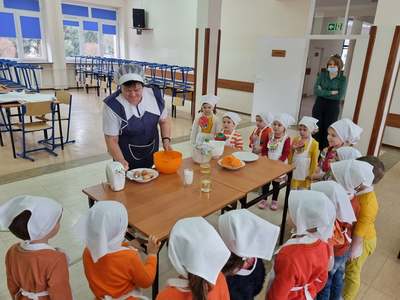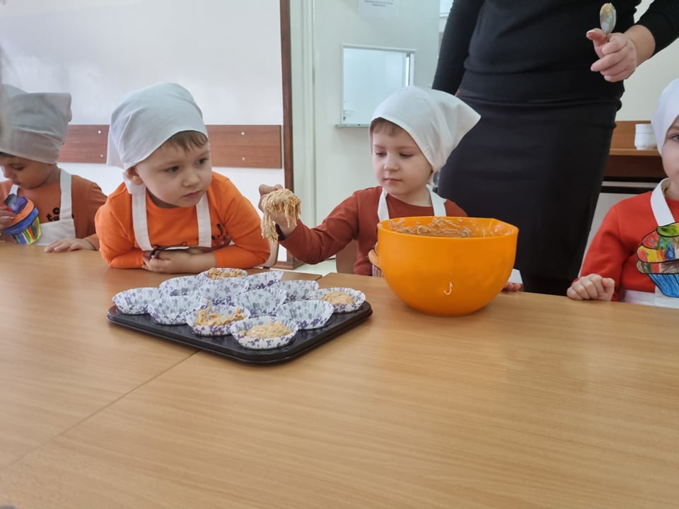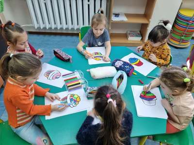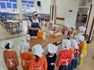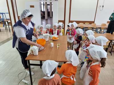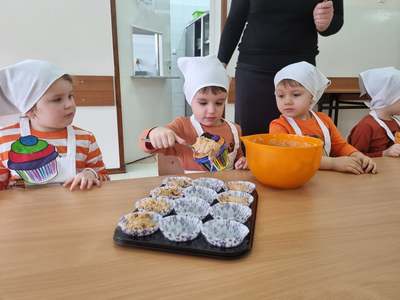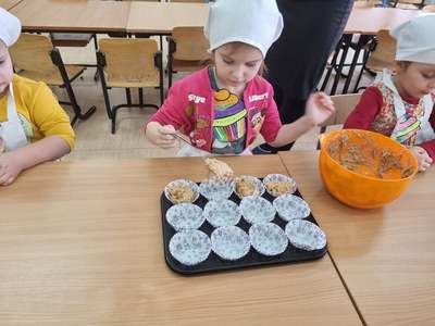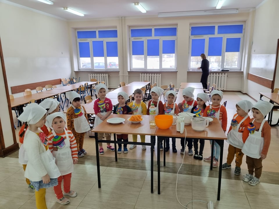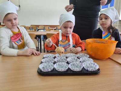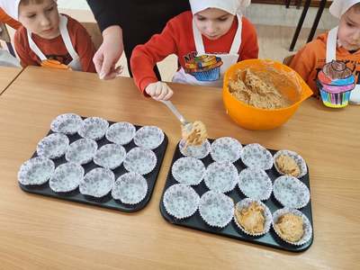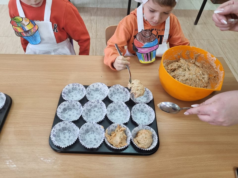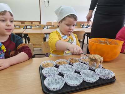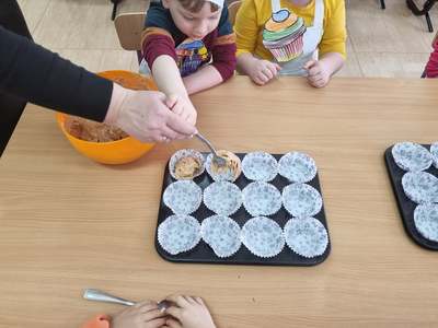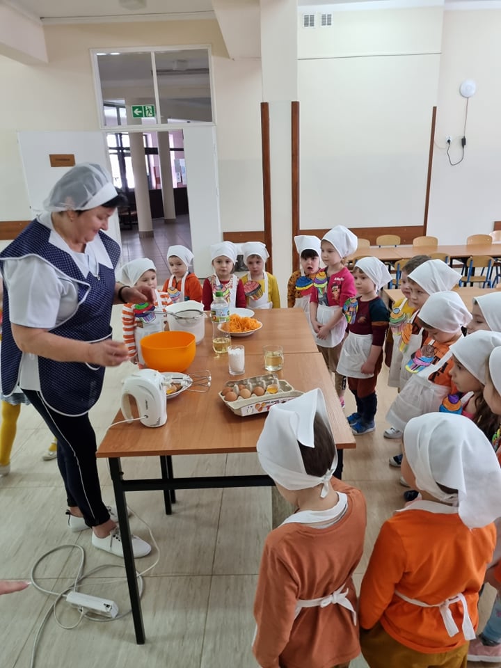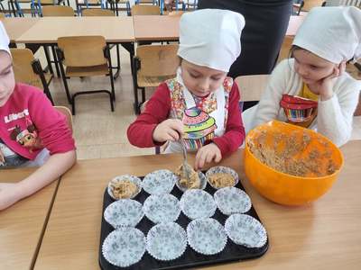 W piątek 3 lutego świętowaliśmy kolejny kolorowy dzień w przedszkolu. Już od rana w naszej grupie zrobiło się bardzo pomarańczowo, smacznie i zdrowo, a wszystko za sprawą Marchewki. Po „marchewkowych” zabawach „Słoneczka” na zajęciach kulinarnych przygotowały z marchewek pyszne muffinki. Dzieci miały okazję poznać krok po kroku cały proces tworzenia ciasta. Na początku działań praktycznych dzieci zapoznały się z przepisem oraz potrzebnymi składnikami do zrobienia ciasta. Następnie każdy z Małych kucharzy przygotował sobie swoją muffinkę. Z niecierpliwością czekaliśmy, aż ciasto się upiecze. Przedszkolakom bardzo smakowało własnoręcznie przygotowana i udekorowana babeczka, którą zjedliśmy z wielkim apetytem. Trzeba przyznać, że ciasto wyszło bardzo smaczne i szybko zniknęło z talerzyków. „Dzień Ciasta Marchewkowego ” był doskonałą okazją do poznania walorów odżywczych i smakowych tego warzywa.
