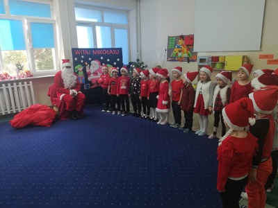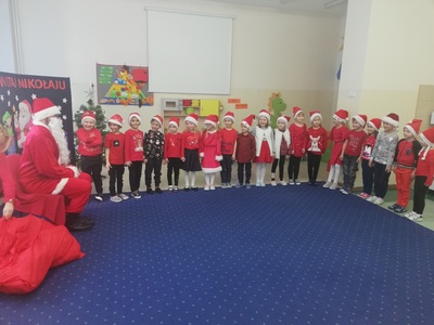 3 grudnia w naszym przedszkolu pojawił się długo oczekiwany gość – Święty Mikołaj. Pomimo braku śniegu udało mu się dotrzeć do przedszkola. Powitaliśmy św. Mikołaja recytowaniem wiersza oraz śpiewaniem piosenek. Spotkanie z Mikołajem minęło w bardzo miłej atmosferze i przyniosło dzieciom wiele radości. Wszystkie dzieci dostały prezenty. Cieszymy się, że Św. Mikołaj o nas pamiętał i czekamy na jego wizytę w przyszłym roku.