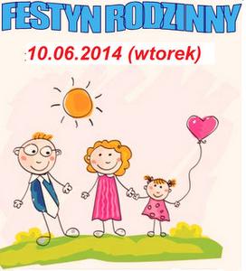 W dniu 10.06.2014r. w godzi. od 1330 – 1530 odbędzie się w Zespole Placówek Oświatowych Przedszkolu Publicznym Plenerowy Festyn Rodzinny dla Przedszkolaków oraz dla dzieci które będą uczęszczać do Przedszkola w roku szkolnym 2014/2015.