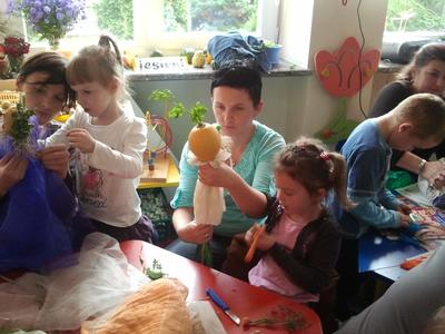 „Wielkanocne niespodzianki” to zajęcia otwarte z rodzicami w grupie III. Po wykonaniu świątecznych stroików wyruszyliśmy na poszukiwanie wielkanocnegozajączka. Trasę wędrówki wyznaczały zajęcze stopy, pod którymi ukryte były pisanki z zadaniami do wykona
