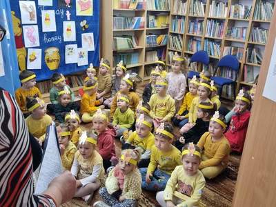 Biblioteka w Złotnikach nie zapomina o miejscowych przedszkolakach. Dzieci zostały zaproszone do biblioteki, gdzie poznały krótką historię misia. Rozpoznawały przyjaciół Kubusia Puchatka na ilustracjach. Wysłuchały uważnie opowiadania o dobrych manierach z książki „Kubuś...