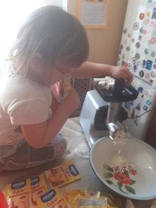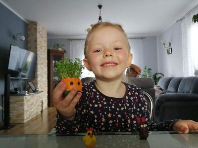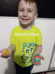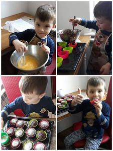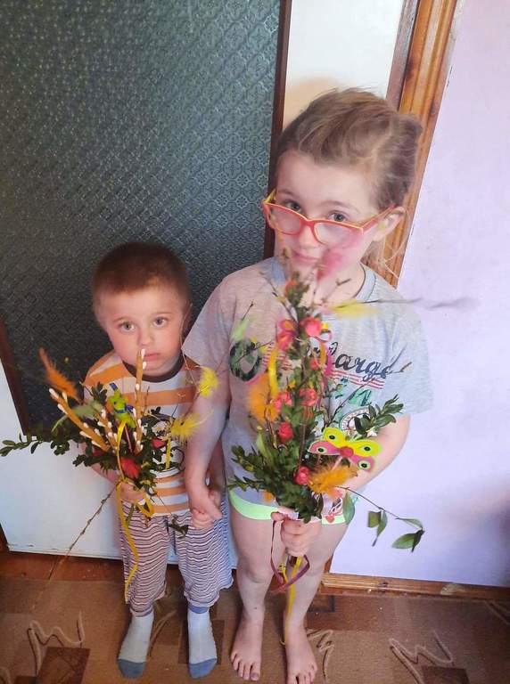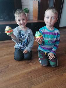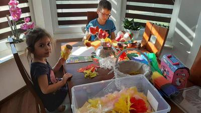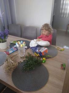 W grupie "Słoneczka" dzieci wspierane przez rodziców wykonały szereg prac związanych z tematyką świąteczną o charakterze artystyczno - kulinarnym, np. robiły palmy, zdobiły jajka, przygotowywały świąteczne ciasta (w tym babeczki). Zaprezentowały również efekty swoich umiejętności w formie rysunków, filmików, zdjęć.