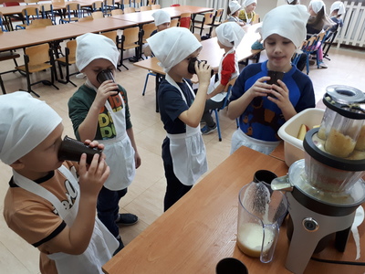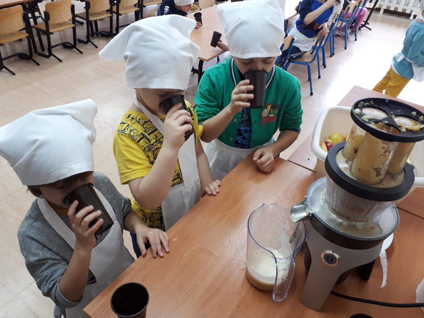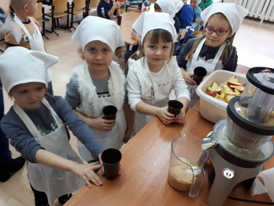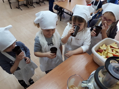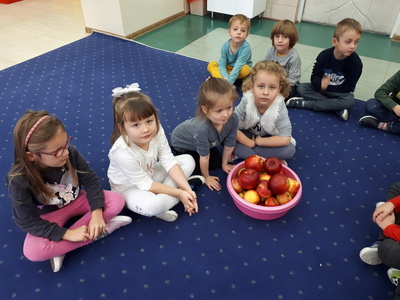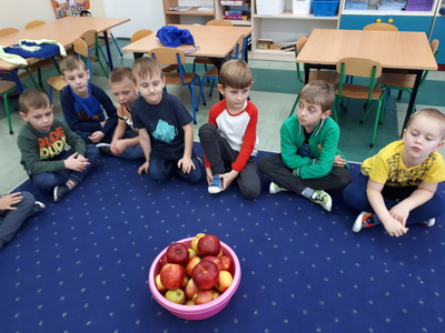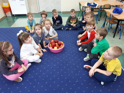 Kształtowanie postaw prozdrowotnych jest procesem długotrwałym i zaczyna się już w przedszkolu. Dlatego mając na uwadze zdrowie naszych wychowanków nie zapominamy o organizowaniu sytuacji edukacyjnych, które promują zdrowie. Dzieci z grupy „Krasnale” doskonale wiedzą, że aby być zdrowym należy się między innymi prawidłowo odżywiać. Każdy przedszkolak rozumie potrzebę spożywania owoców oraz warzyw. Dziś dzieci przyniosły do przedszkola jabłka. Z myślą o witaminkach, postanowiliśmy zrobić sok jabłkowy. Jednak zanim przystąpiliśmy do pracy, dzieci zapoznały się z urządzeniem do wyciskania soku - wyciskarką, jej działaniem i utrwalały zasady bezpieczeństwa.