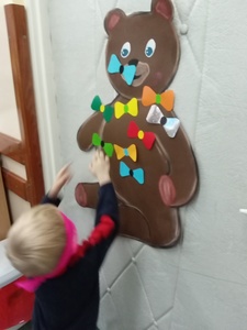 25 listopada2020 dzieci z grupy młodszej uczestniczyły w obchodach Światowego Dnia Pluszowego Misia. W tym roku ze względu na COVID dzień  ten odbył się bez ulubionych pluszaków  Mimo to przygotowano dla dzieci wiele atrakcji; oglądanie filmiku ”Ciekawostki o niedźwiedziach”, przedszkolaki wypowiadały się na temat swoich ulubionych misiów,  wykonywały  pracę plastyczną -  miś  kukiełka, przypinały misiowi kokardkę, były też zabawy matematyczne z Misiami Żelkami. Dużo radości dostarczyły zabawy przy piosenkach „Mały Miś” i „Jadą, jadą Misie”.