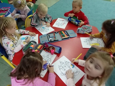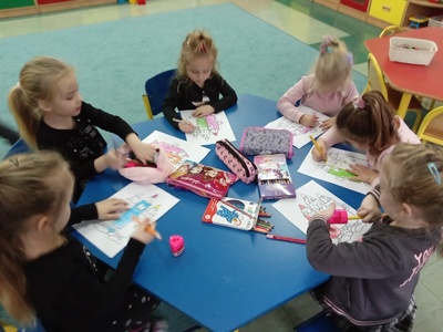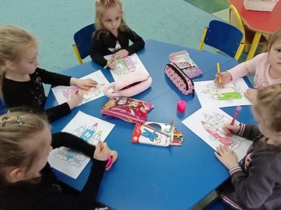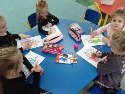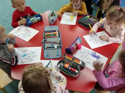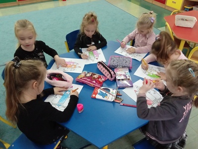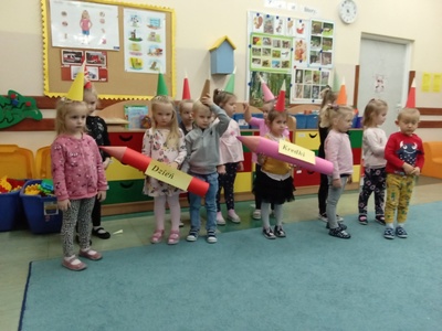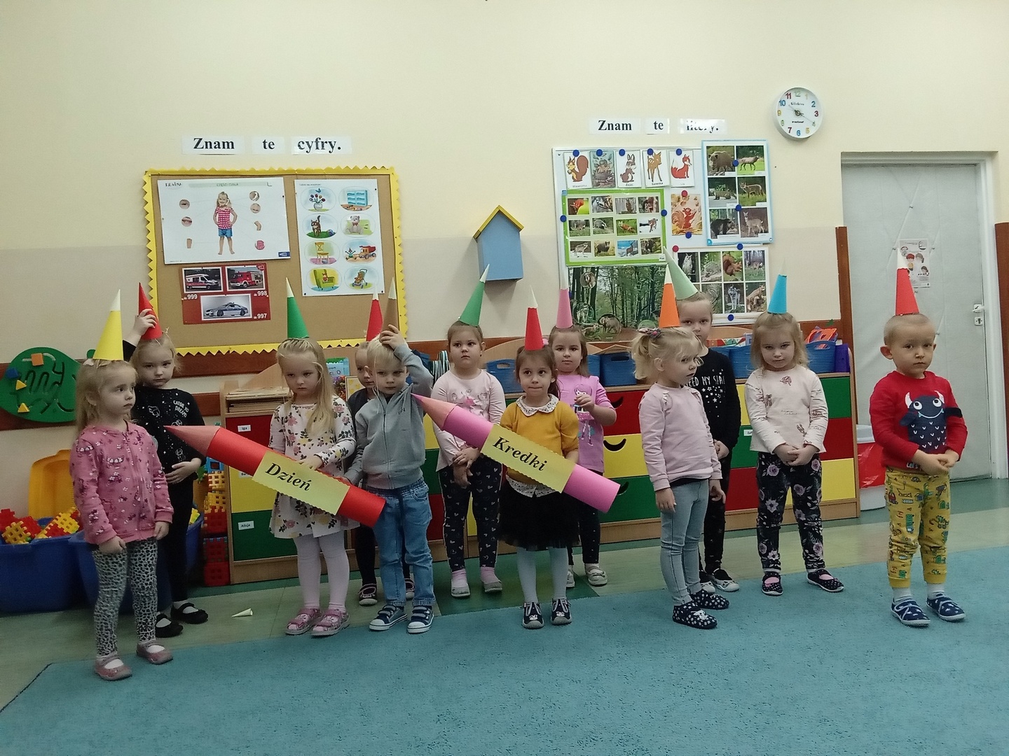 23 listopada br. dzieci z grupy Misie świętowały Dzień Kredki. „Kredkowe” czapeczki zamieniły dzieci w kredki. Dzień ten rozpoczęliśmy od wysłuchania wierszyka Kredki, które są prawdziwymi dziecięcymi skarbami. Dzieci oglądały je ,nazywały ich kolory, liczyły je ,określały do czego one służą. W trakcie zabaw odkryły ,że oprócz rysowania ,kolorowania ,pisania kredki mają inne zastosowanie. Można z nich układać ciekawe wzory. Wyzwaniem dla dzieci była budowa kredek „gigantów” z plastykowych klocków. Zwieńczeniem zajęcia było kolorowanie obrazka z kredkami. Tego dnia było wesoło i kredkowo.