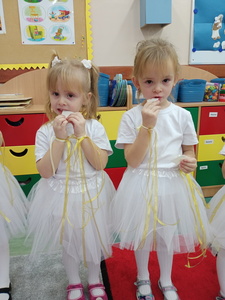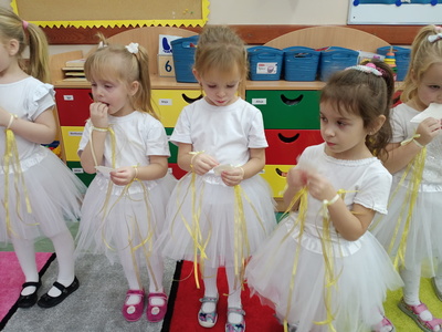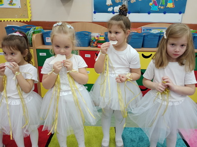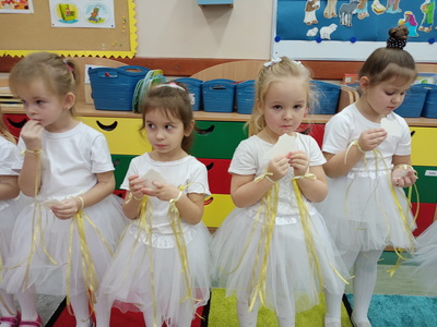 Tradycją naszego przedszkola było coroczne wystawianie jasełek. W tym roku ze względu na COVID jasełka nie odbyły się. Chcąc zaszczepić „ziarenka przywiązania” do tradycji, kilka dni wcześniej rozpoczęły się intensywne przygotowania. 21 grudnia 2020 r. mali aktorzy z grupy Misie w obecności pani dyrektor Krystyny Świerczyńskiej w niecodziennych strojach  prezentowali swoje umiejętności wokalne i taneczne, dając tym samym dowód jak dużo już potrafią. Dzieci złożyły wszystkim świąteczne życzenia. Dzień ten był niezwykle nastrojowy, wprowadził dzieci w radosną i ciepłą atmosferę Świąt Bożego Narodzenia. Odwiedzającym tę stronę życzymy Świąt dających radość, siłę, wytrwałość i nadzieję na Nowy Rok 2021 lepszy niż ten, który przemija.