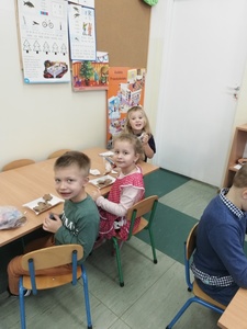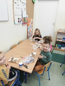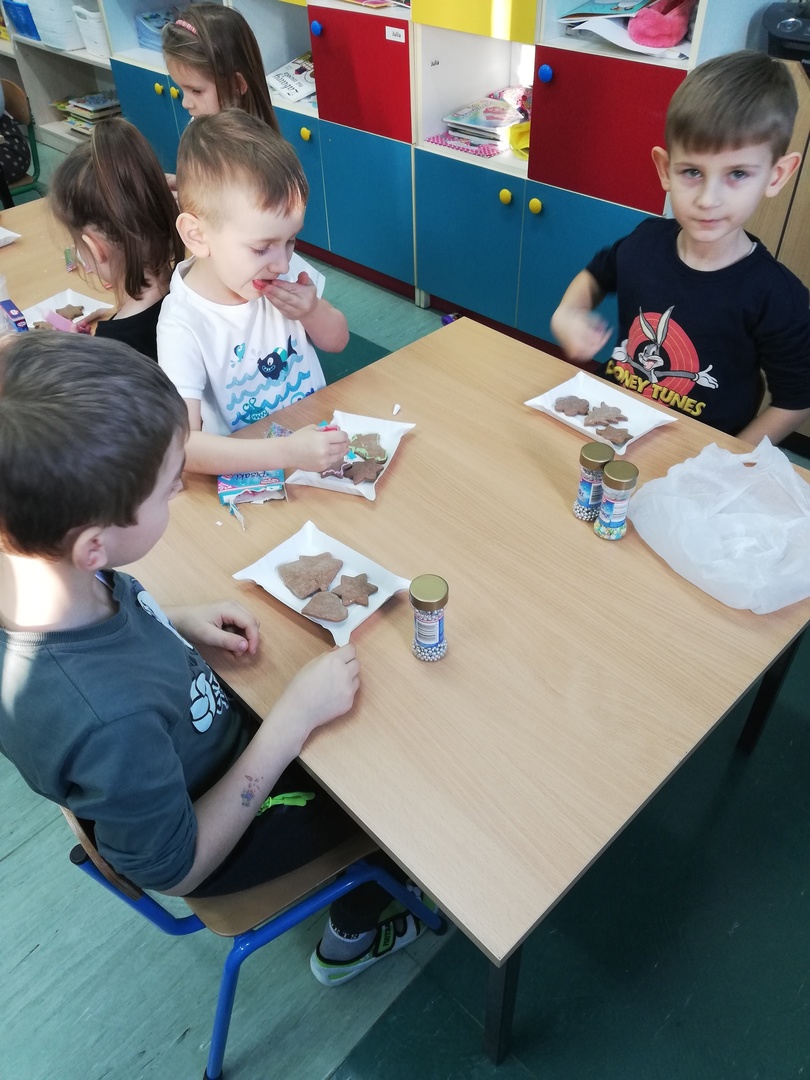Grupa „Krasnale” zaczęła swoje pierwsze przygotowania do Świąt Bożego Narodzenia i upiekły pyszne świąteczne pierniczki. Praca z przygotowaniem wypieków szła gładko i sprawnie. Po ostygnięciu dekorowały pierniczki różnokolorowymi lukrami i barwnymi posypkami. Przygotowanie ciasteczek bardzo się dzieciom podobało, a w przedszkolu unosił się wspaniały aromat pieczonych pierniczków, który wprawiał wszystkich w cudowny, świąteczny nastrój. Kolejna porcja wypieków za rok…