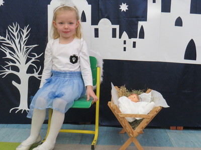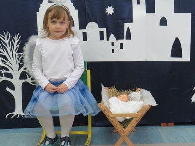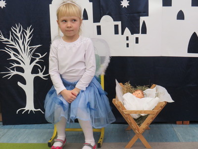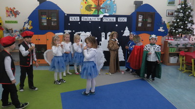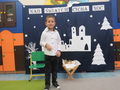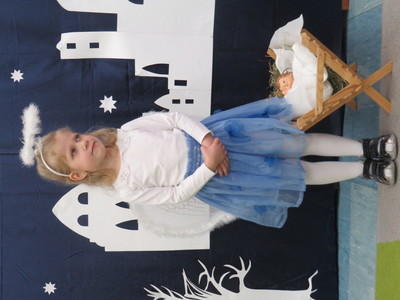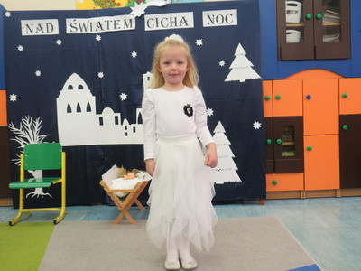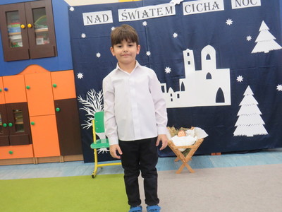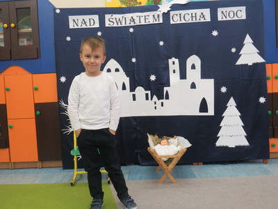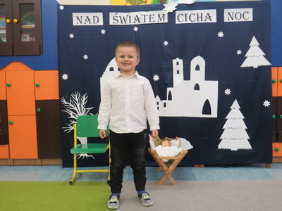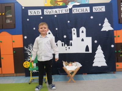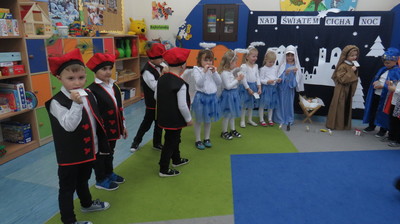 W dniu 22 grudnia 2020r. „Słoneczka” zaprezentowały Jasełkową opowieść o narodzinach Pana Jezusa. W przedstawieniu oprócz dzieci współuczestniczyły nauczycielki w roli narratorów. W magiczny nastrój Świąt Bożego Narodzenia wprowadziła nas melodia kolędy „Cicha noc”. Snuta opowieść ubarwiana była kolędami i pastorałkami. Muzyka przybierała rozmaitą formę: słuchanie, śpiew, taniec, gra na instrumentach. Niezwykłą atmosferę podkreślały stylizowane stroje aktorów i scenografia.