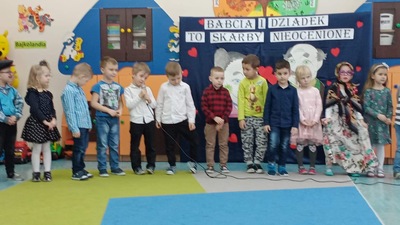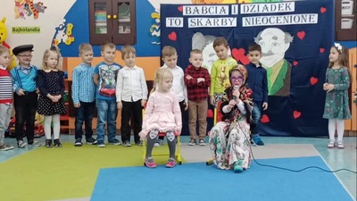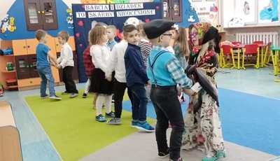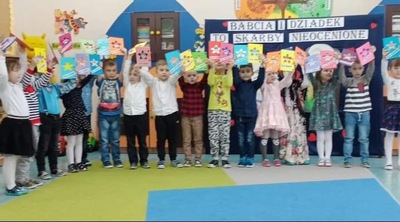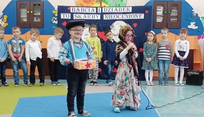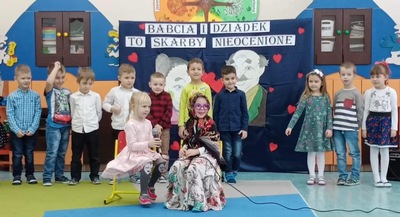 Dzień Babci i Dziadka to niezwykły dzień. W tym roku przebiegał w odmiennych warunkach, ale równym zaangażowaniem dzieci. Na tę okoliczność "Słoneczka" przygotowały bogaty repertuar artystyczny i piękne laurki z życzeniami. Piosenkami, wierszami i tańcem wnukowie starali się wyrazić kochanym dziadkom swoje uczucia i podziękowanie za trud włożony w ich wychowanie. Niecodzienną atmosferę wprowadziła Lenka, która zainterpretowała utwór "Gdy prababcia była mała" i zaśpiewała piosenkę "Katarynka". Tym samym dała możliwość przeniesienia się wyobraźnią w lata młodzieńcze seniorów. Na zakończenie wspólnie odśpiewaliśmy biesiadną piosenkę "Sto lat! ". Wszystkim babciom i dziadkom życzymy wszystkiego najlepszego nie tylko w dniu ich święta.