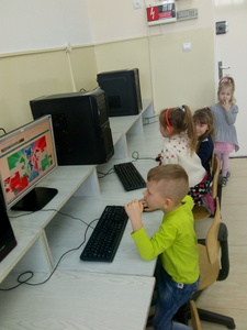 W ramach Dnia Bezpiecznego Internetu "Słoneczka" odwiedziły salę komputerową. Zapoznały się z podstawowymi elementami komputera (obudowa, myszka, klawiatura). Dowiedziały się jak bezpiecznie korzystać z Internetu i bawić się sięgając po różne gry edukacyjne. Mogły przy okazji doświadczać swoich umiejętności podczas układania puzzli w aplikacji. To był fascynujący dla nich czas.