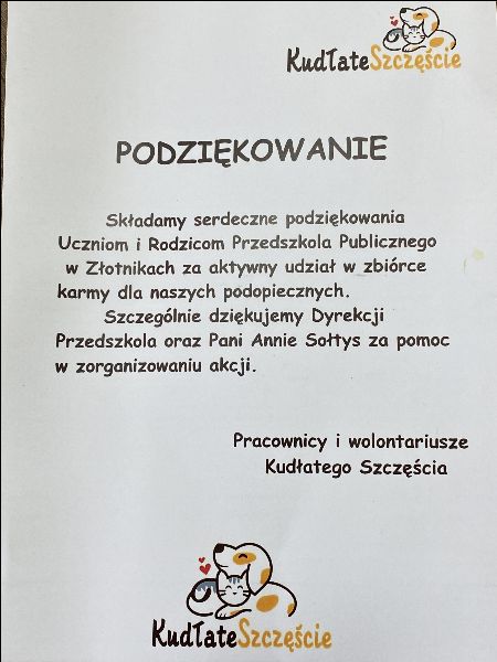5 lutego przekazaliśmy zebraną karmę dla psów i kotów ze schroniska w Potoku Wielkim. Po smakołyki przyjechał wdzięczny psi przedstawiciel ze swoją opiekunką. Serdecznie dziękujemy dzieciom i rodzicom za pomoc.