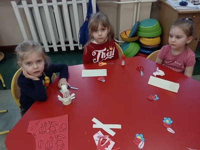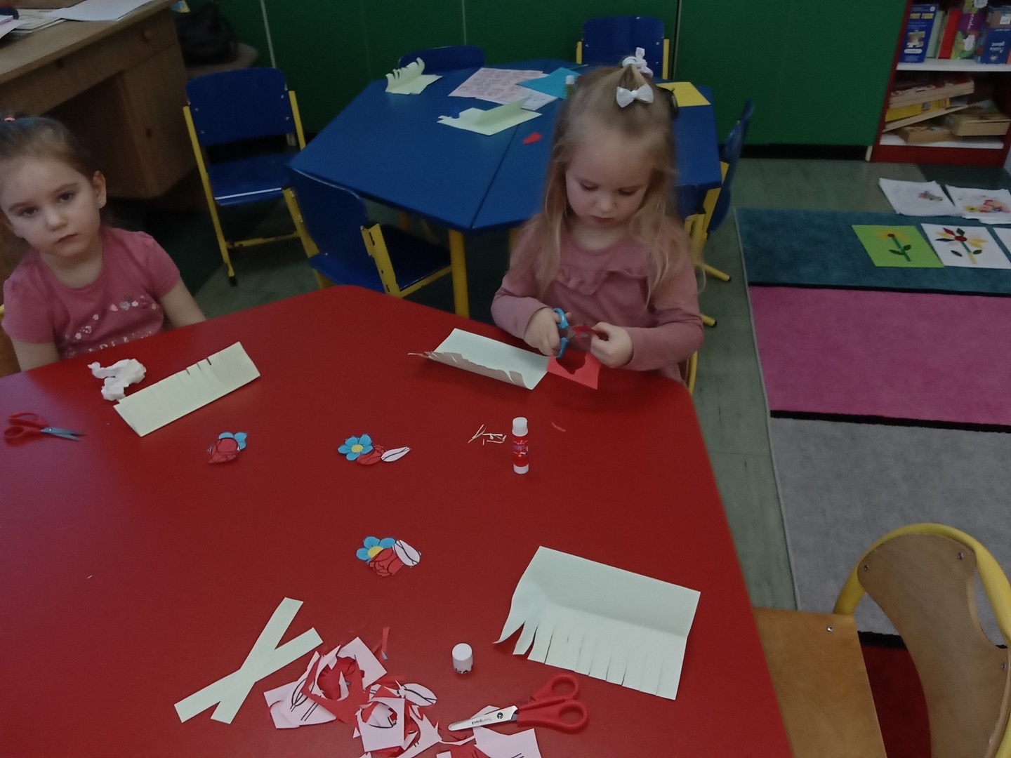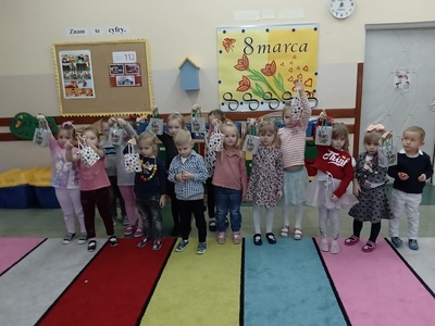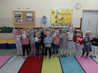 8 marca to był dzień wyjątkowy dla dzieci z grupy Misie. Był okazją do rozmów  o czynnościach wykonywanych przez kobiety i  wybranych zawodach. Dzieci wykazały się pomysłowością w układaniu kwiatów z mozaiki geometrycznej. Mimo swojego święta dziewczynki  chętnie wykonywały upominek dla  swoich mam. Dzieci wspólnie bawiły się przy nagraniach lubianych piosenek i brały udział w zabawach sportowych. Wszystkie kobietki w tym dniu otrzymały życzenia i niespodzianki, dziewczynki drobne upominki a panie kwiaty. Ten dzień na pewno długo będą wspominać dziewczynki. Odwiedzającym tę stronę  mamom, babciom, siostrom mali mężczyźni życzą SPEŁNIENIA MARRZEŃ, NAJPIĘKNIEJSZYCH DNI PRZEPEŁNIONYCH SŁOŃCEM  I  UŚMIECHEM.