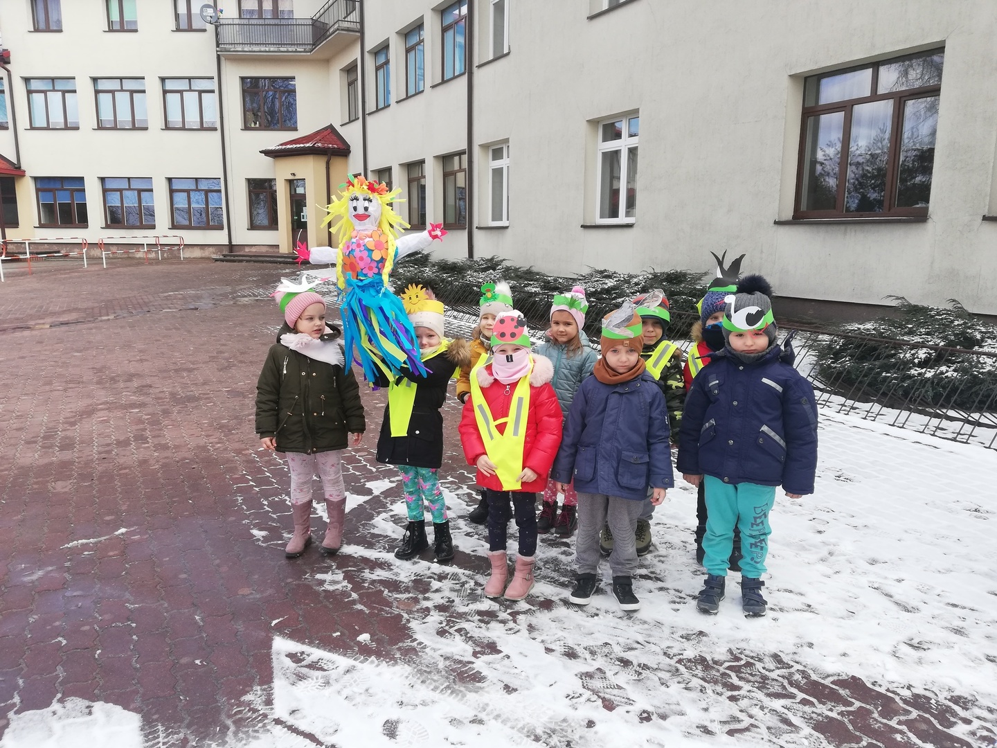 W dniu 22 marca 2021r. zgodnie z tradycją, grupa „Słoneczka” udała się barwnym korowodem z Marzanną na czele nad pobliską rzekę, aby tam dokonać obrzędu pożegnania zimy i powitania wiosny. Radosnymi wiosennymi okrzykami, wierszem, piosenkami dzieci żegnały zimę i przywoływały wiosnę. Dopełnieniem ceremonii było symboliczne zniszczenie Marzanny i umieszczenie jej w worku. Po powrocie dzieci bawiły się przy skocznej muzyce wyrażając tym samym radość z nastania nowej pory roku – wiosny.