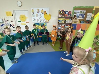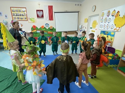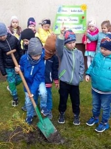 22 kwietnia grupa „Słoneczka” uczestniczyła w obchodach Dnia Ziemi. W tym dniu dzieci założyły zielone ubranka na znak, że są sprzymierzeńcami zielonej i czystej planety. Nauczycielka ubrana w pelerynę z elementami symbolizującymi różnego rodzaju zanieczyszczenia podzieliła się z dziećmi swoimi rozterkami i problemami związanymi z ekologią i ochroną Ziemi. Uświadamiała na jakie zagrożenia jest narażona nasza planeta, prosząc jednocześnie o pomoc w jej ratowaniu. Następnie zaprosiła do obejrzenia filmików edukacyjnych o tematyce ekologicznej. W dalszej części dzieci wykazywały się swoimi wiadomościami i umiejętnościami –recytowały wierszyki, śpiewały piosenki, pokazały krótkie przedstawienie „ Czy Agata naprawdę kocha się w kwiatach?”, rozwiązywały ekologiczny quiz. Nauczyły się również na pamięć rymowanki o ochronie przyrody w formie i złożyły przyrzeczenie: Przyjaciółmi przyrody chcemy być i w zgodzie z naturą żyć”. Zwieńczeniem obchodów Dnia Ziemi było wyjście na plac szkolny z transparentem „ Zielony kolor dziś króluje, bo Ziemia z nami świętuje” i posadzenie na skwerku zaszczepek wierzby wyhodowanych w kąciku przyrody. Na pamiątkę tego dnia każdy przedszkolak otrzymał nagrodę w postaci dyplomu „Przyjaciel przyrody”.