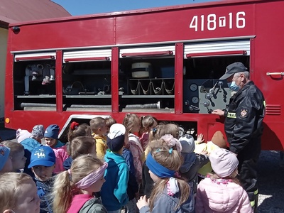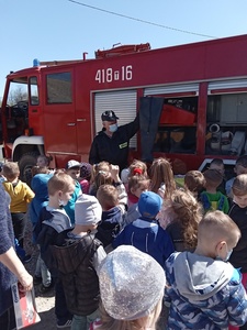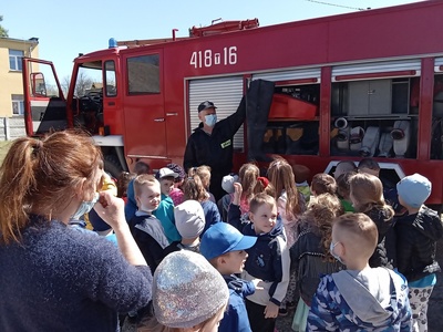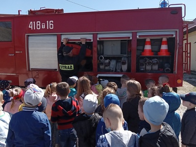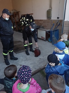Z okazji niedawno obchodzonego Dnia Strażaka dzieci z grupy „Misie” 10 maja udały się na wycieczkę do remizy OSP w Złotnikach. Podczas tej wizyty, dzieci wzbogaciły swoją wiedzę na temat pracy strażaka. Oglądały wóz strażacki, mundur oraz ubranie zakładane do różnych akcji, sprzęt, wysłuchały próbny alarm syreny i przypomniały numery, które wzywamy na pomoc. Przez chwilę dzieci chętne mogły poczuć się jak strażacy przymierzając hełm lub wsiadając do wozu strażackiego. Dzieci były szczęśliwe i wesołe. Dzień  ten zostanie na długo w pamięci dzieci. W imieniu społeczności naszego przedszkola serdecznie dziękujemy Panu D. Michaleckiemu komendantowi OSP w Złotnikach i Panu strażakowi J. Rudnickiemu za przekazane informacje o pracy strażaka, zaprezentowanie wozu strażackiego oraz sprzętu.