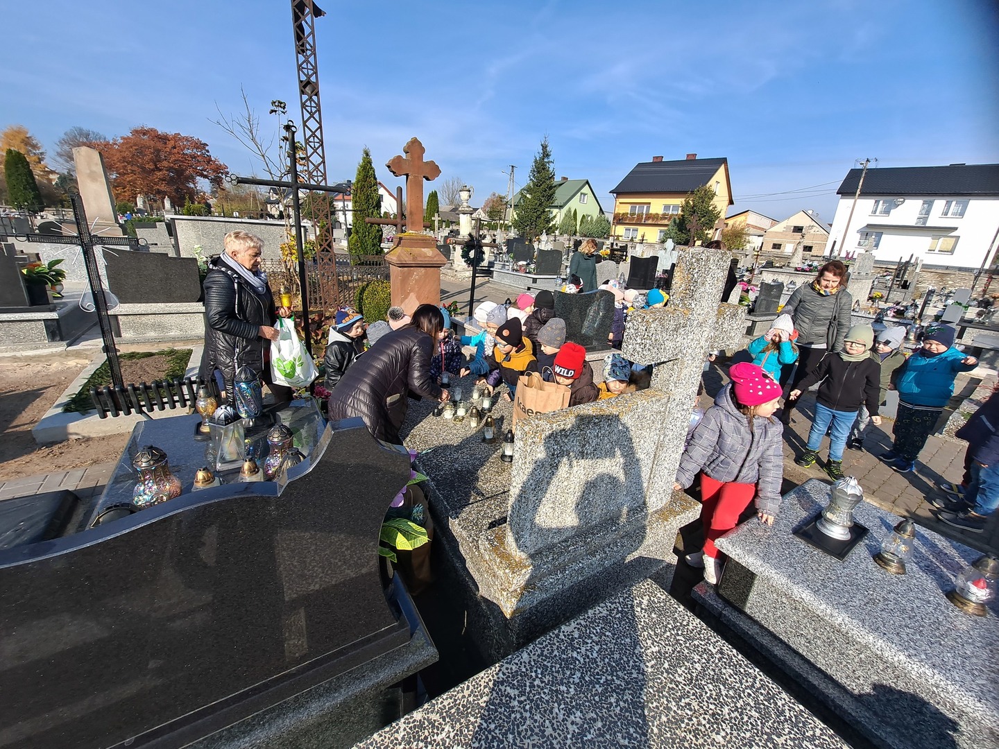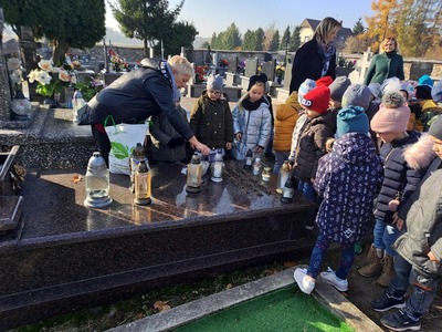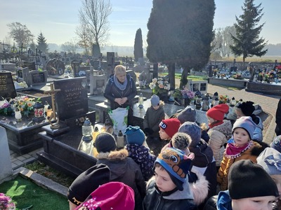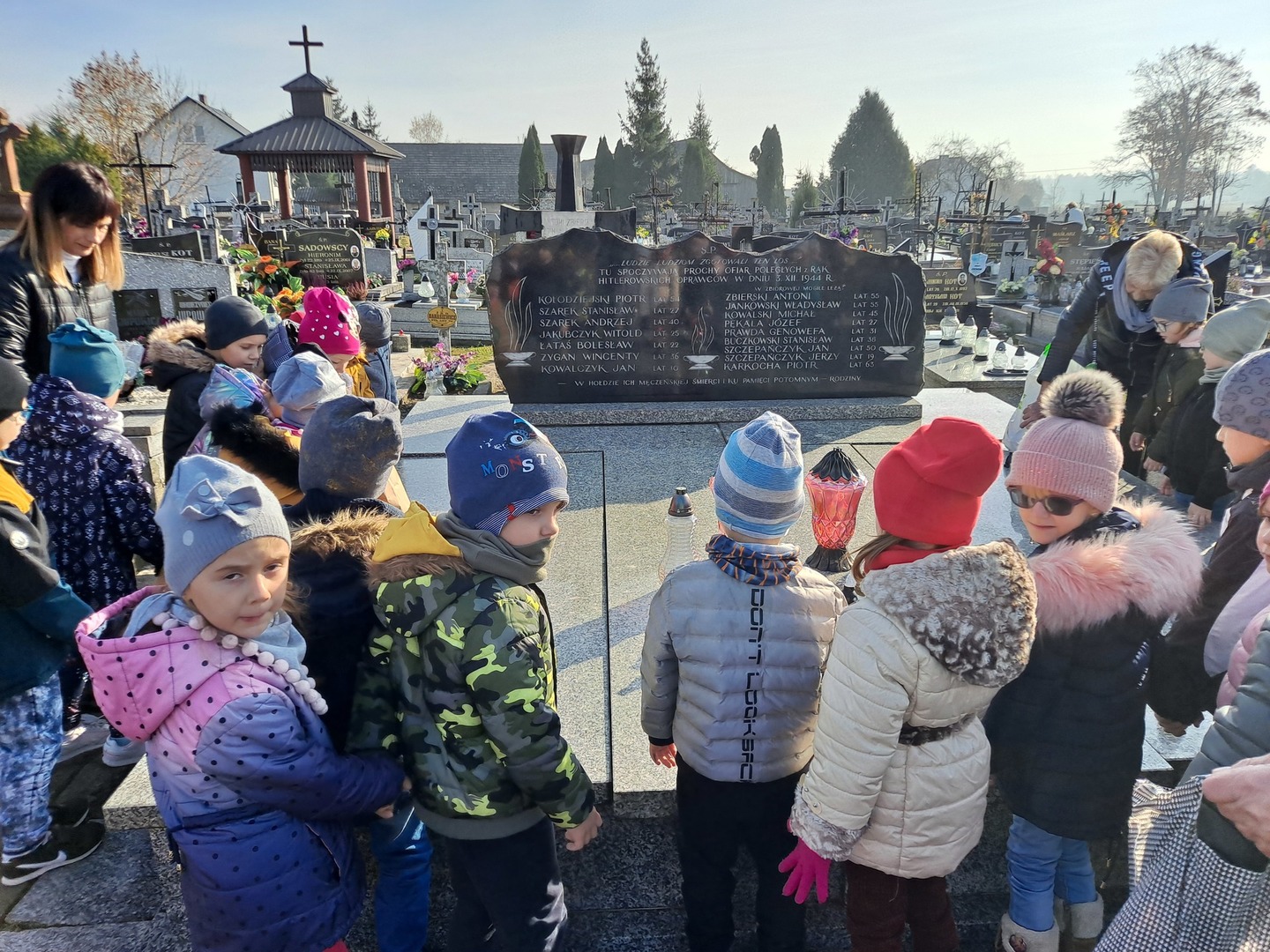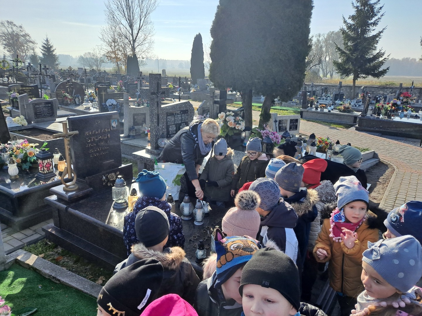Spacer alejkami cmentarza był dla dzieci ogromnym przeżyciem, szły skupione i bardzo zaciekawione. To była jedna z ważniejszych lekcji wychowania rodzinnego, obywatelskiego i patriotycznego, która z pewnością pozostanie w pamięci dzieci.