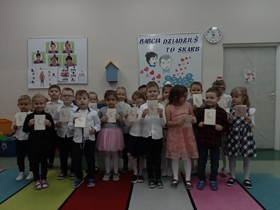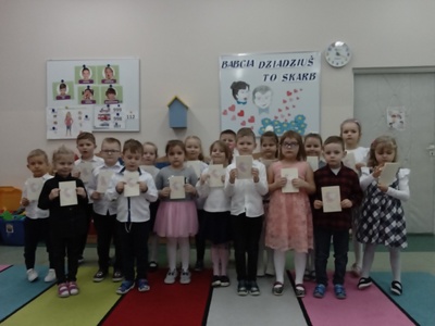 14 stycznia tj. piątek dzieci z grupy Misie składały swojej Babci i swojemu Dziadziusiowi życzenia z okazji zbliżającego się Dnia Babci i Dnia Dziadka ( powód wcześniejszego świętowania –ferie zimowe).