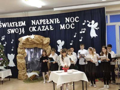 W dniu 17 grudnia 2021 roku w naszej szkole ZPO w Złotnikach odbyło się spotkanie wigilijne. Wcześniejsza data spotkania była podyktowana przejściem od najbliższego poniedziałku na zdalny system nauczania. Jak co roku przed Świętami Bożego Narodzenia – cała społeczność szkoły spotkała się, aby wspólnie pochylić się nad cudem Wcielenia Syna Bożego i radośnie świętować to wydarzenie. W świąteczny nastrój Świąt Bożego Narodzenia wprowadzili nas uczniowie klasy IV. Tego dnia uczniowie tej klasy, będący gospodarzami wigilii szkolnej, pod opieką Pani katechetki Danuty Obłąk, Pani Anity Grad i Pani Joanny Curyłę przygotowali dla nauczycieli, pracowników szkoły i szkolnych kolegów apel świąteczny. Wszyscy uczniowie wspólnie z dyrekcją oraz gronem pedagogicznym spotkali się, aby spędzić ten czas na radosnym kolędowaniu. Uroczystość podzielona była na dwie części. Pierwsza część była edukacyjna - podczas której organizatorzy zaprezentowali zebranym informacje dotyczące tradycji świątecznych. Drugą cześć reprezentowali nasi najmłodsi uczniowie – przedszkolaki, którzy przedstawili jasełka, aby przypomnieć nam wydarzenie Narodzenia Pana Jezusa - Zbawiciela. Całość dopełniły kolędy. Na zakończenie popłynęły życzenia dla Dyrekcji, nauczycieli, wszystkich pracowników oraz uczniów naszej szkoły.