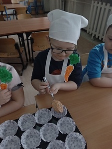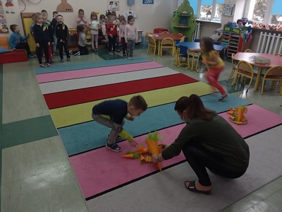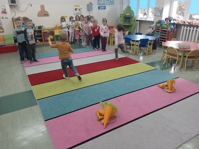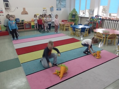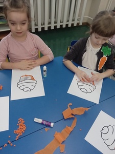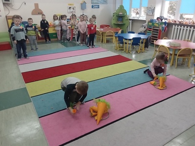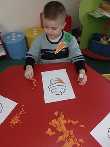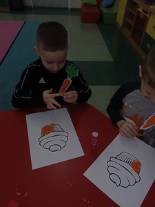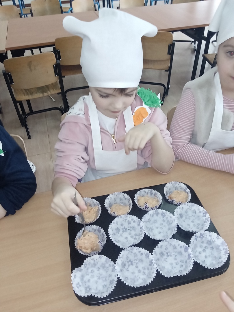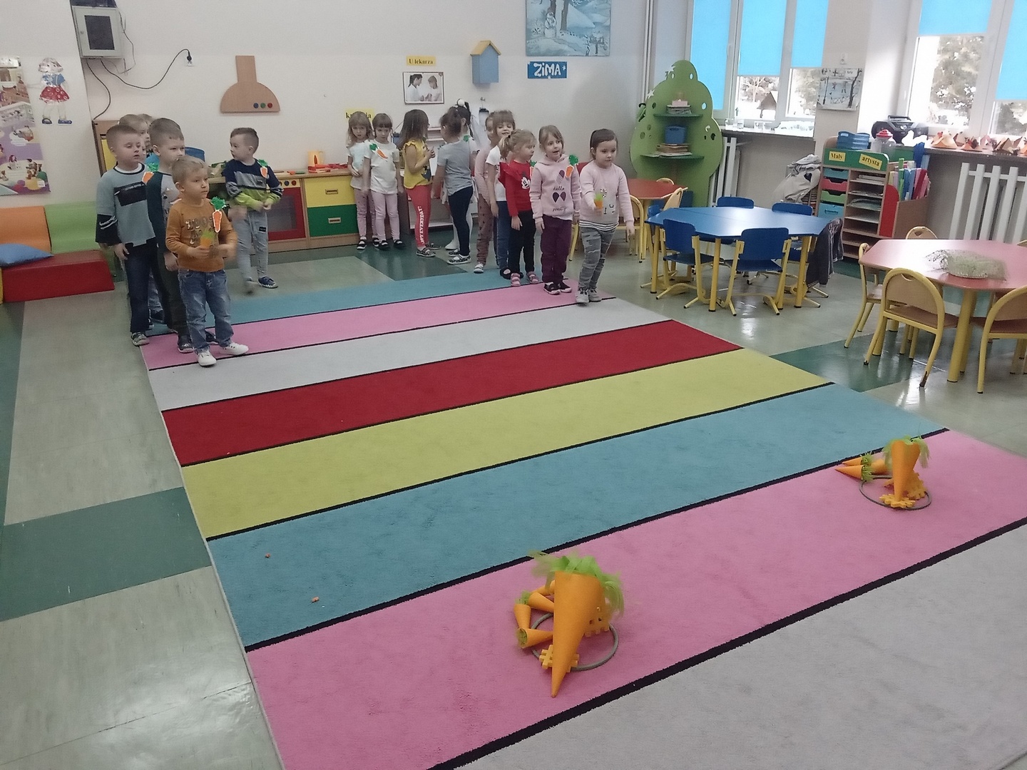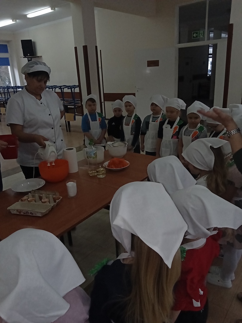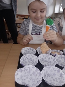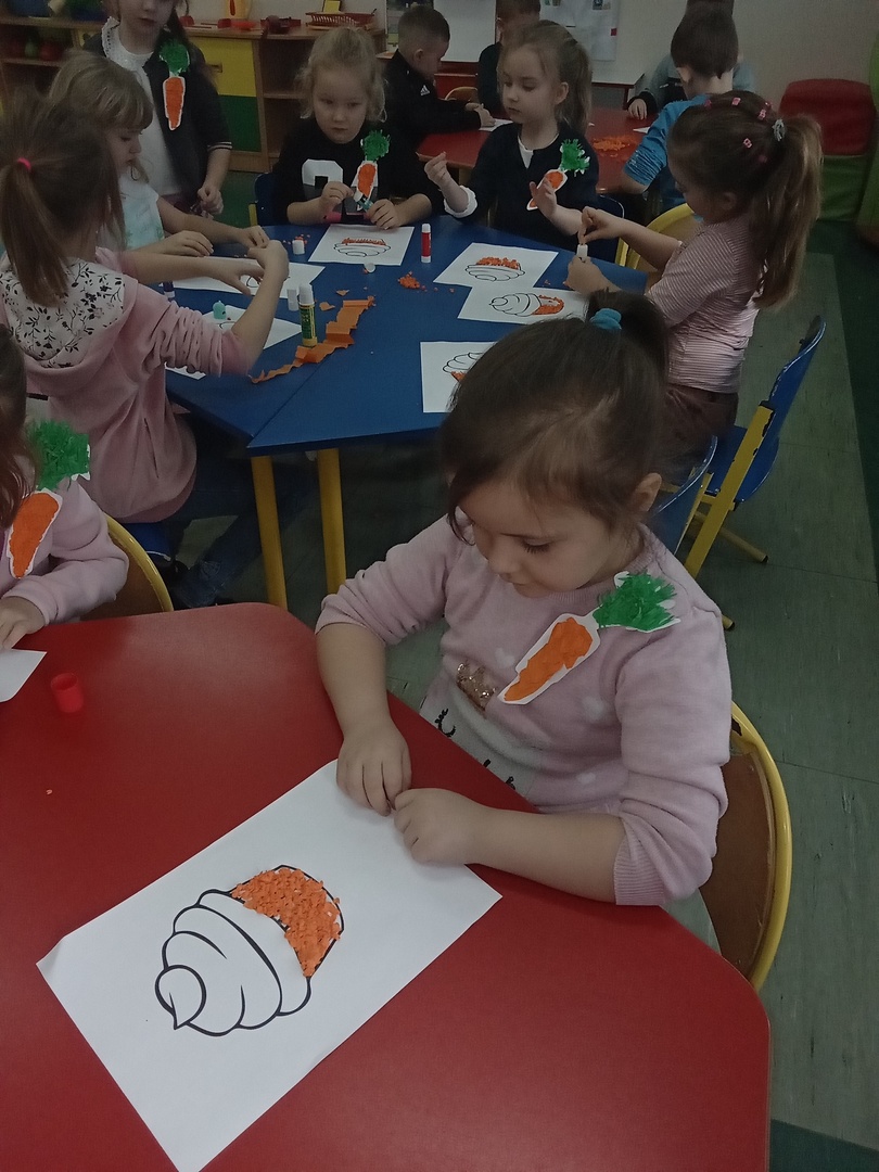 Dnia 3 lutego 2022r. „Misie” obchodziły Dzień Ciasta Marchewkowego. Dzień rozpoczęliśmy od marchewkowego quizu, tu dzieci przypominały i utrwalały wiadomości o marchewce oraz poznawały jej wartości zdrowotne. Następnie ubrane w fartuszki i chusteczki obserwowały pracę pani kucharki przy przygotowaniu marchewkowego ciasta. Poznały składniki potrzebne do jego wykonania, oraz okazjonalnie przypomniały budowę jajka. Z dużym zaangażowaniem napełniały foremki do pieczenia przygotowanym ciastem. Podczas pieczenia się ciasta dzieci wykonywały pracę plastyczną oraz brały udział w zabawie ruchowej. Gdy babeczki upiekły się dzieci ochoczo przystąpiły do ich ozdabiania i degustacji. W tym dniu nie zabrakło marchewki do jedzenie na surowo.