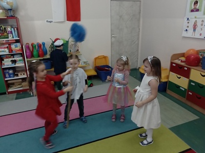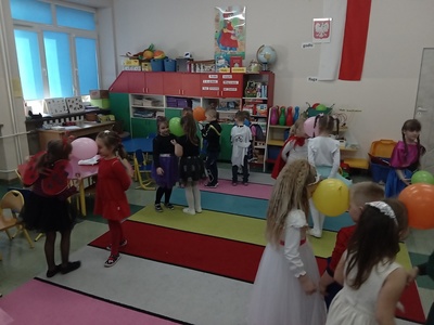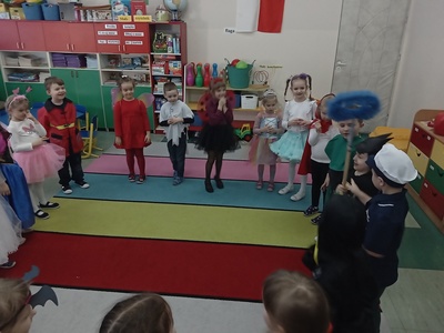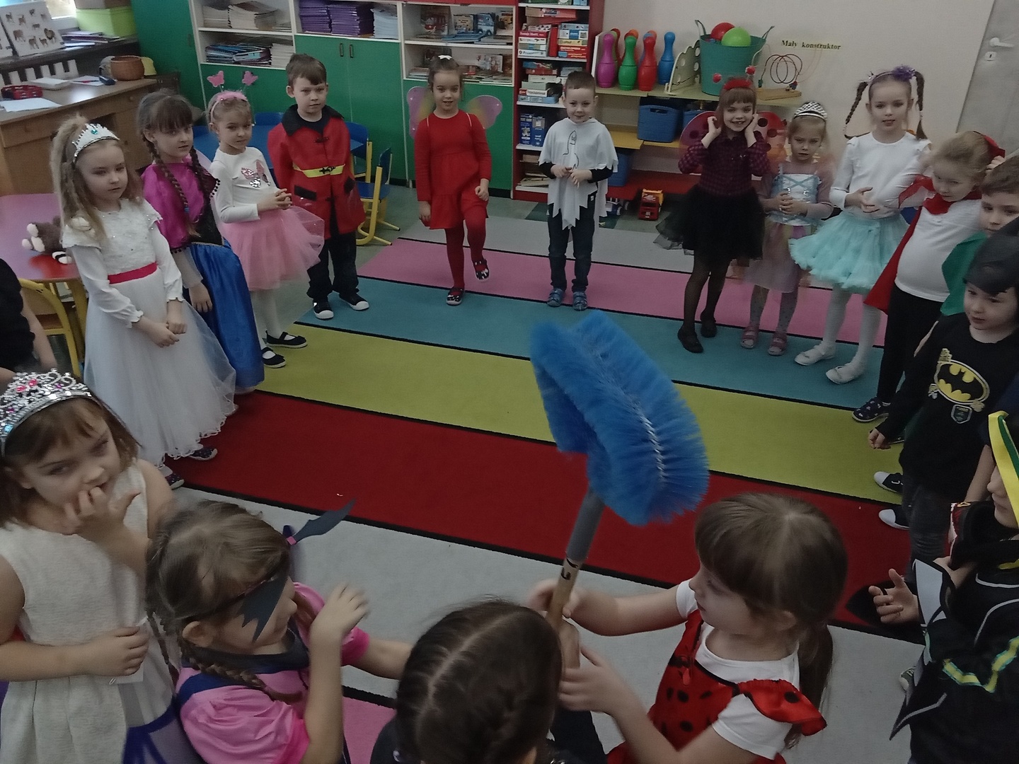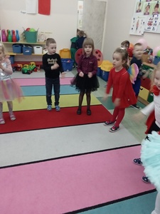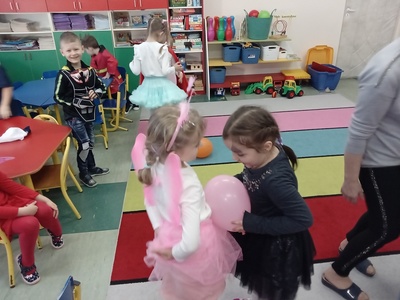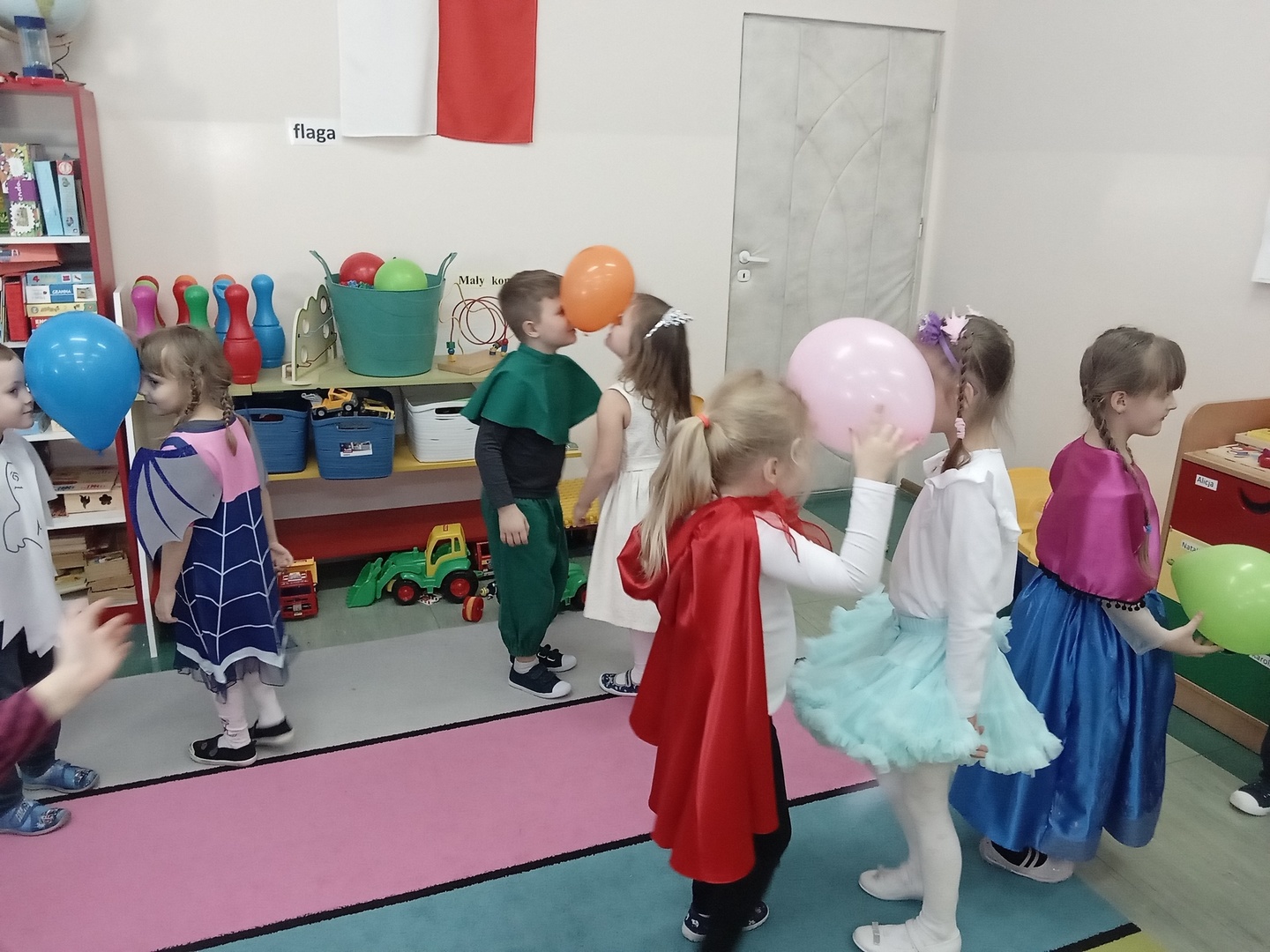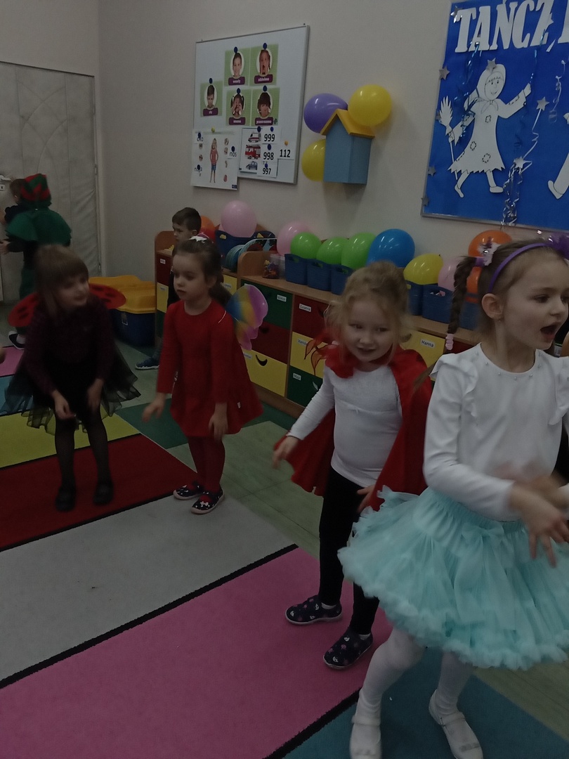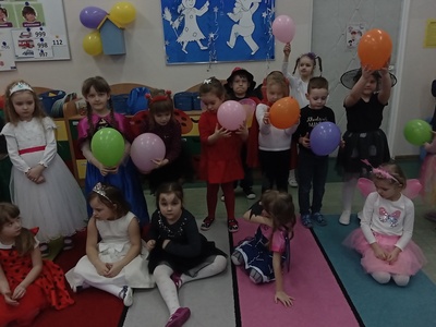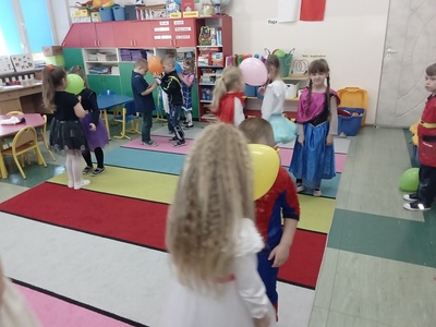 Karnawał to okres balów, zabaw. Jest lubiany od najmłodszych aż po tych w sile wieku, jest formą rozrywki, która dostarcza radości. Tegoroczna zabawa odbyła się 24 lutego 2022r. (w tłusty czwartek), ze względu na panującą pandemię, każda grupa bawiła się w swojej sali. Tego dnia już od rana na sali pojawiały się księżniczki, wróżki, biedronki, policjanci , kotki a także postacie z ulubionych bajek np. Czerwony Kapturek. Trudno było rozpoznać dzieci. Po prezentacji strojów rozpoczęły się tańce w rytm skocznej muzyki, która była przeplatana konkursami. Kolorowe pociągi, szalone pląsy przy muzyce wprawiły wszystkich w karnawałowy nastrój. Ponieważ bal odbywał się w tłusty czwartek, dlatego każde dziecko zajadało się pysznymi pączkami. Szkoda tylko, że do następnego balu znów trzeba czekać cały rok.!