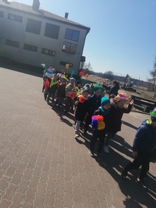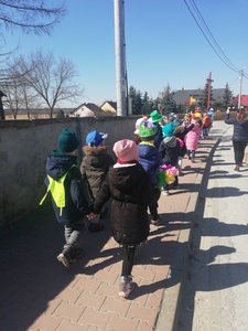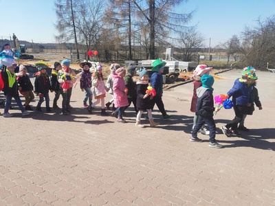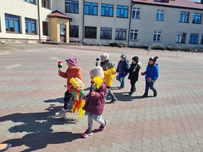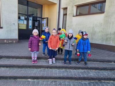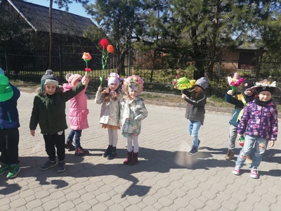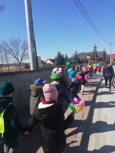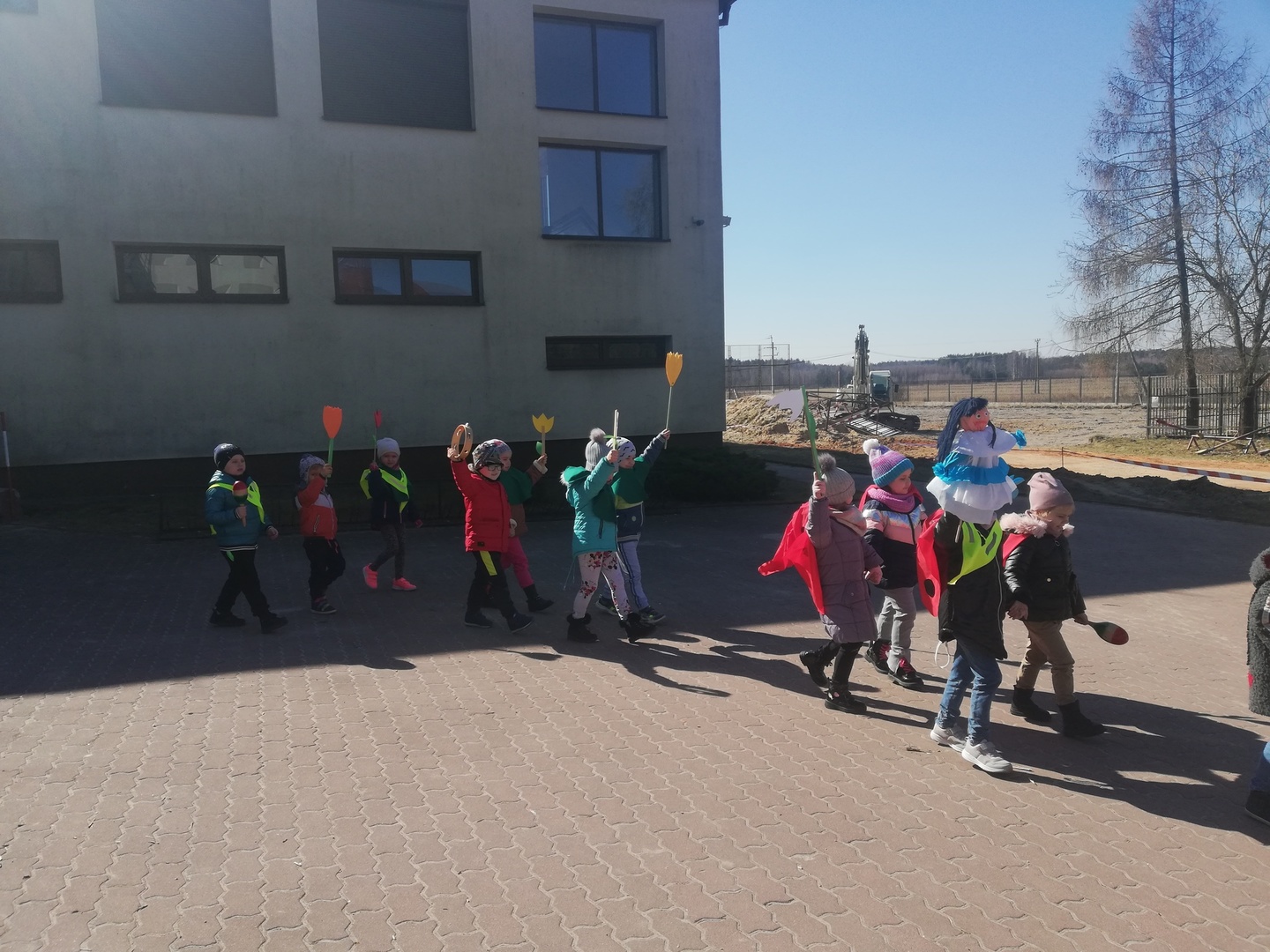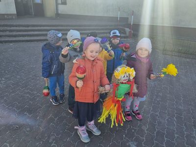 W dniu 21 marca 2022 roku dzieci z naszego przedszkola wzięły udział w tradycyjnym obrzędzie pożegnania zimy i powitania wiosny – „Topieniu Marzanny”. Przygotowania do tej uroczystości przedszkolnej odbywały się już wcześniej poprzez naukę piosenek, wierszyków i rymowanek. O godzinie 10.00 wszystkie przedszkolaki zebrały się przed przedszkolem, by wspólnie wyruszyć barwnym korowodem. Podczas spaceru po pobliskiej okolicy dzieci śpiewały piosenki przy akompaniamencie instrumentów muzycznych. Wszystkich ogarnęła radość. Wiosenne słońce przygrzewało i oświetlało roześmiane twarze uczestników korowodu. Dzieci pożegnały Marzannę – zimową pannę, a gromkimi brawami powitały wiosnę. Podczas powrotu do przedszkola wszystkie grupy postanowiły szukać dowodów przybycia wiosny w czasie spaceru. Dzieci stwierdziły zgodnie, że wiosna już przybyła i mają nadzieję, że zagości u nas na dobre, zazieleni łąki, drzewa i trawy.