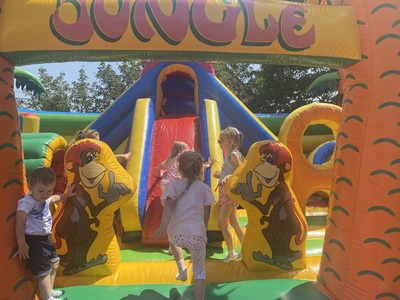 W dniu 20.06.2022r. odbyło się uroczyste zakończenie roku przedszkolnego. Każda z grup zaprezentowała część artystyczną po której nastąpiło uroczyste rozdanie dyplomów i książek.Najstarsza z grup zakończyła swoją wspaniałą przygodę z przedszkolem by od września przekroczyć progi szkoły i stać się jej ucznia. Po części artystycnej na dzieci czekała niespodzianka wesołe miasteczko wraz z animatorami z firmy Patigo. W trakcie festynu dzieci mogły skosztować lodów, waty i popcornu. To był niezapomniany dzień ,który przyniósł wiele radości i uśmiechów na twarzach dzieci oraz był dobrym początkiem wakacji.