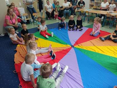 Aby maluchy dobrze czuły się w przedszkolu trzeba je odpowiednio nastawić i przygotować. Temu właśnie służyły przeprowadzone ZAJĘCIA ADAPTACYJNE. Takie zajęcia mają na celu eliminowanie stresu związanego z rozpoczęciem edukacji przedszkolnej oraz usamodzielnienie dziecka, wzmacnianie poczucia własnej wartości i pokazania ile radości daje wspólna zabawa z rówieśnikami i paniami w przedszkolu. Maluchy i ich bliscy spędzili miło czas uczestnicząc w zajęciach muzycznych, plastycznych i ruchowych. Mamy nadzieję, że dzieci bezpieczniej i odważniej stawią czoło nowej i trudnej dla nich sytuacji i z uśmiechem wkroczą w przedszkolny świat.