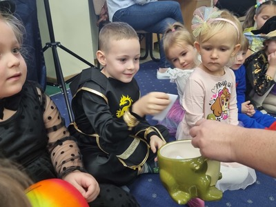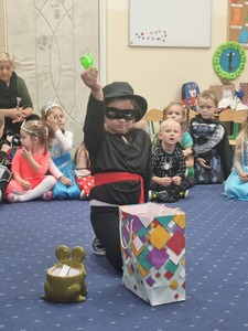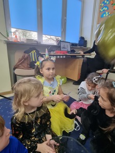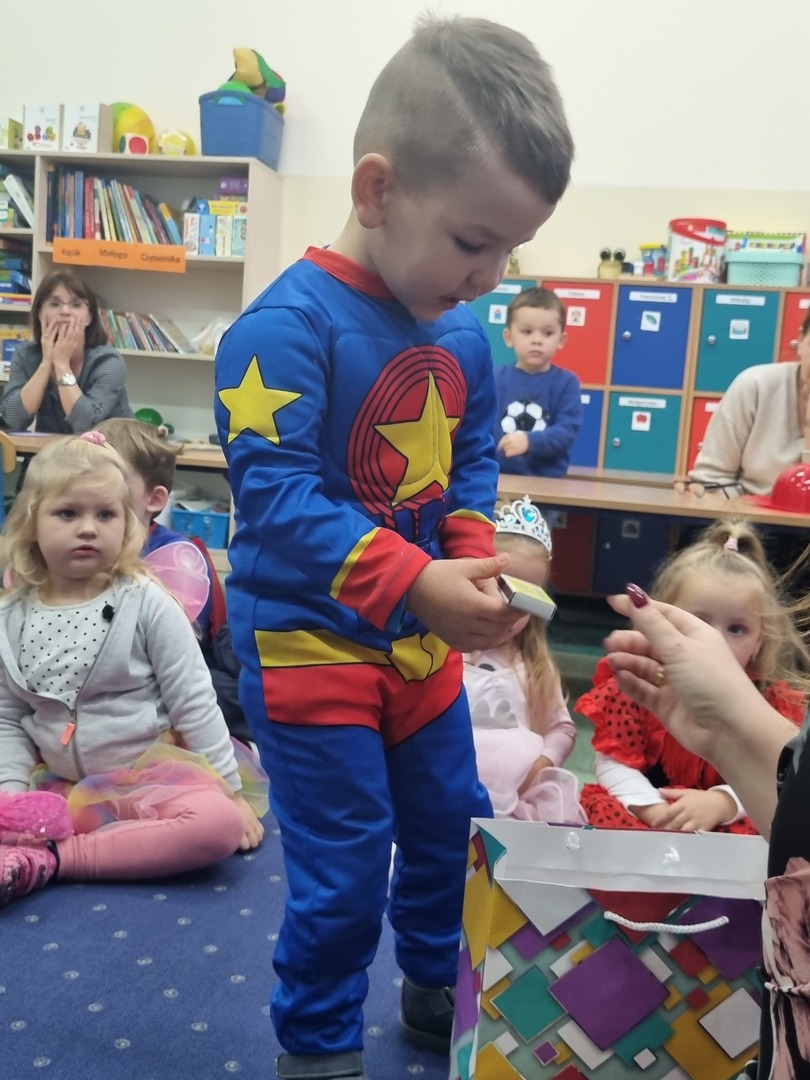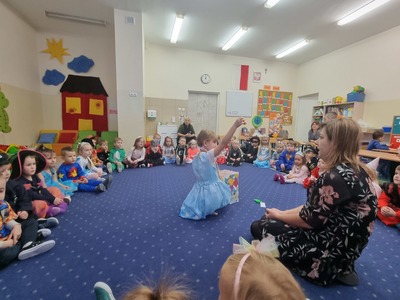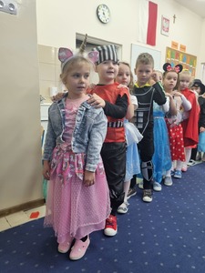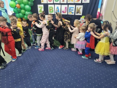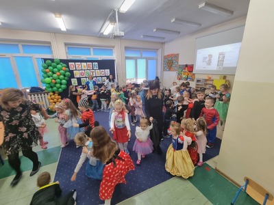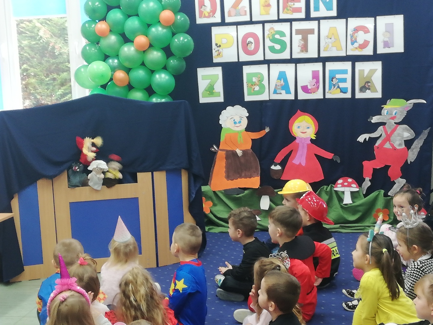 5 listopada obchodzone jest jedno z najsympatyczniejszych świąt – Dzień Postaci z Bajek. Wybrana data nie jest przypadkowa – jest to dzień urodzin Walta Disney’a. Święto stało się okazją, aby przypomnieć ulubionych bajkowych bohaterów, zanurzyć się w świat magicznych historii i zainspirować dzieci z naszego przedszkola do wspólnej zabawy w „bajkowym wymiarze”. Nasze przedszkolaki to święto obchodziły 09.11.2022r. Tego dnia przyszły do przedszkola w przepięknych strojach, które zaprezentowały podczas piosenki „Witajcie w naszej bajce.” Teatrzyk „Czerwony Kapturek” w wykonaniu nauczycieli przedszkola, przybliżyły im m.in. takie wartości jak troskliwość, życzliwość, odwaga i zaufanie. Tego dnia rozwiązywały też zagadki słowno-obrazkowe, opowiadały o swoich ulubionych bohaterach, rysowały i kolorowały malowanki. Na koniec bajkowego, pełnego radości i dobrej zabawy dnia, wszystkie grupy zrobiły sobie pamiątkowe zdjęcie na ściance przygotowanej specjalnie na tę okazję oraz częstowały się słodkimi pierniczkami.