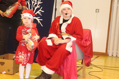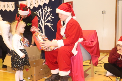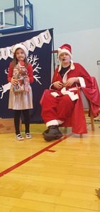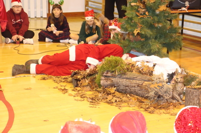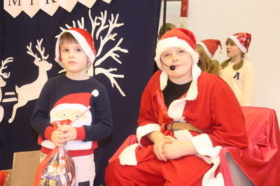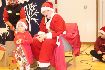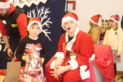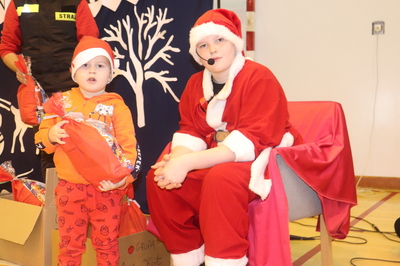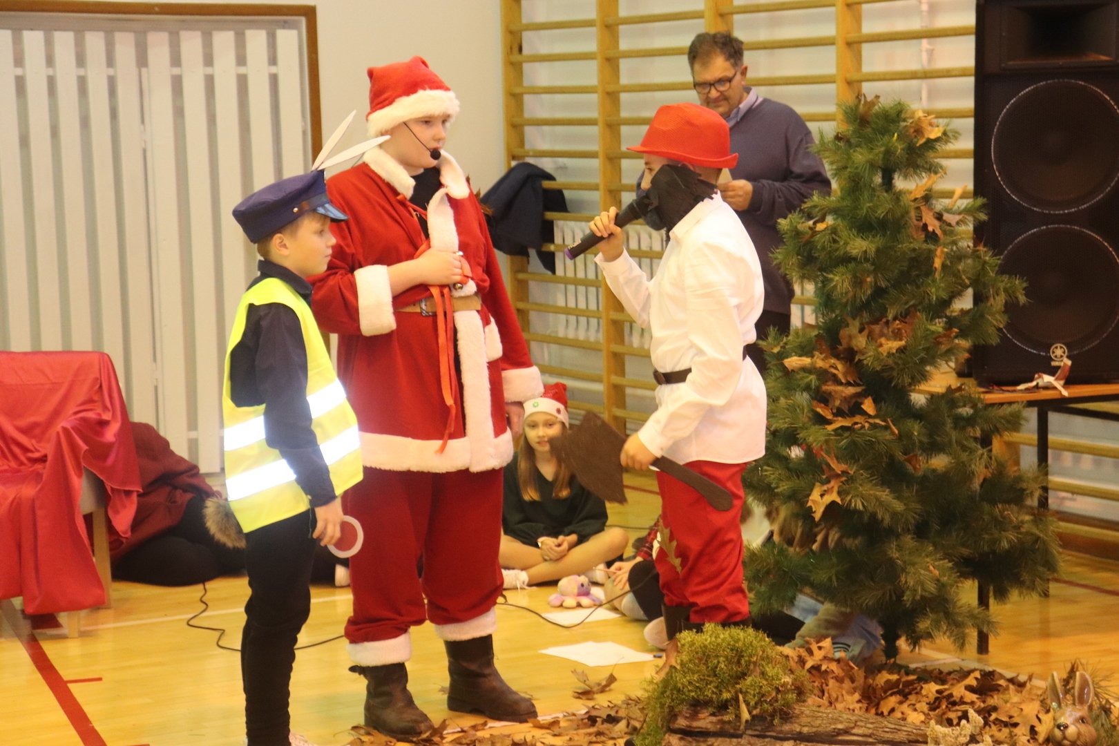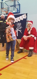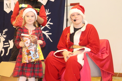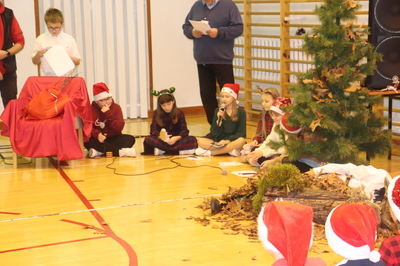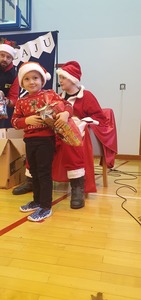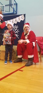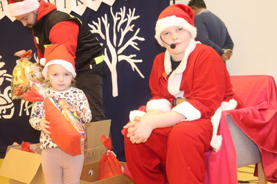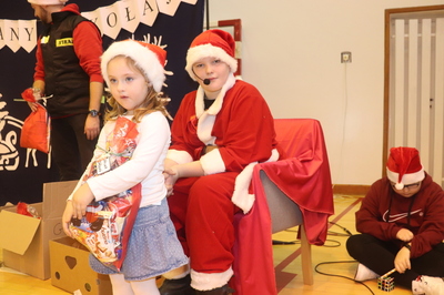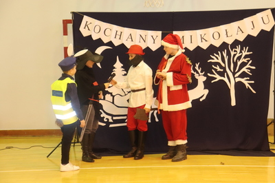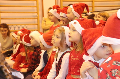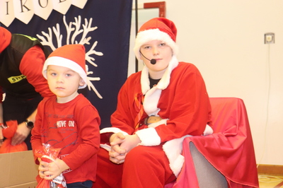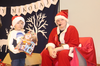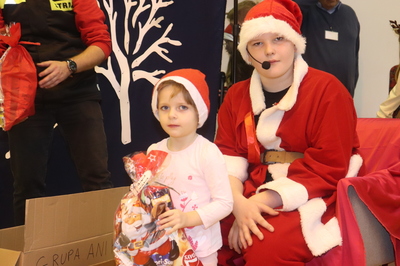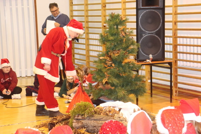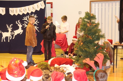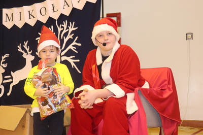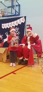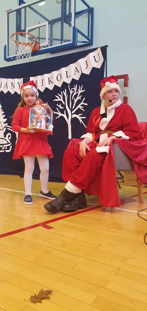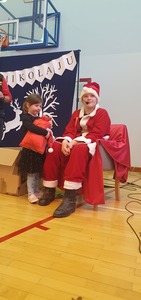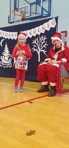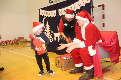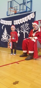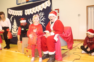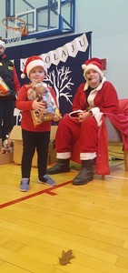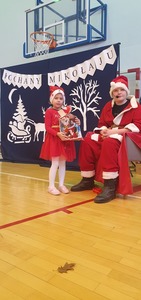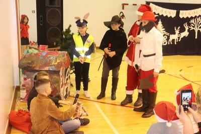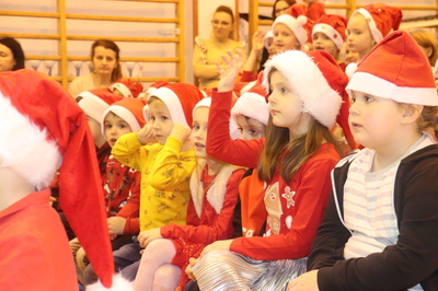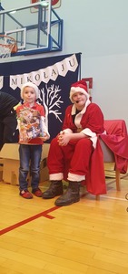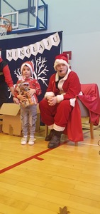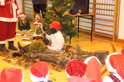 w tarapatach”. Po obejrzeniu przedstawienia Nasz gość zaczął rozdawać dzieciom prezenty. Niektóre dzieci po raz pierwszy witały Mikołaja w przedszkolu. Wszystkie bardzo przeżywały to spotkanie. Na niejednej twarzy można było zobaczyć niepewność i obawę, ale przede wszystkim radość. Dzieci również miały niespodziankę dla Świętego Mikołaj wspólnie zaśpiewały piosenkę pt.” Siedem reniferów”.