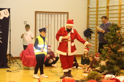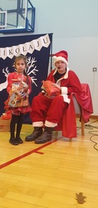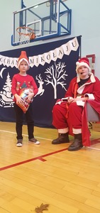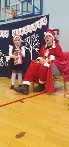 Wizyta Świętego Mikołaja w naszym przedszkolu to jeden z najbardziej oczekiwanych przez dzieci dni w roku. 6 grudnia 2022r. wszystkie dzieci już od samego rana z wielką niecierpliwością spoglądały na drzwi, nadsłuchiwały „mikołajkowych” dzwoneczków. Święty Mikołaj nie zawiódł dzieci i w godzinach przedpołudniowych odwiedził wszystkich przedszkolaków. Na początku naszej przygody obejrzeliśmy wspólnie przedstawienie przygotowane przez uczniów klas starszych pt.” Mikołaj