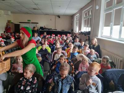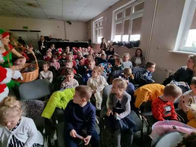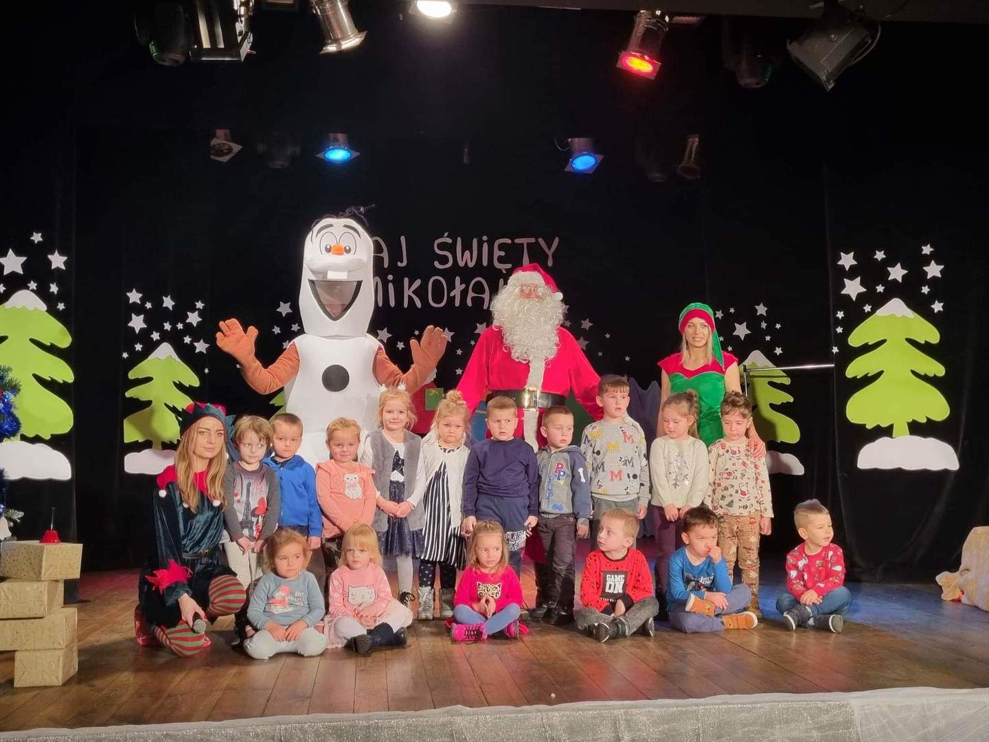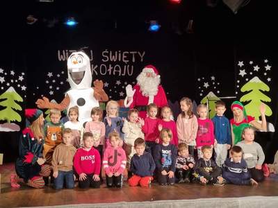 5 grudnia 2022r. dzieci z naszego przedszkola wybrały się do Domu Kultury w Małogoszczu, aby spotkać się z Mikołajem. Czas upłynął w wielkiej radości, zabawie oraz wspólnym śpiewaniu piosenek o zimie i  Mikołaju. W trakcie różnych zabaw dzieci lepiły bałwana, a także produkowały śnieg. Przez cały pobyt towarzyszyły im Elfy, Elza, bałwan Olaf i oczywiście Święty Mikołaj, który wspólnie z Panią Małgorzatą Adamek oraz Panem Janem Traczem wręczyli wszystkim dzieciakom słodkie upominki.