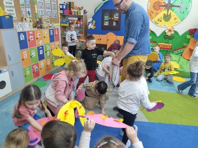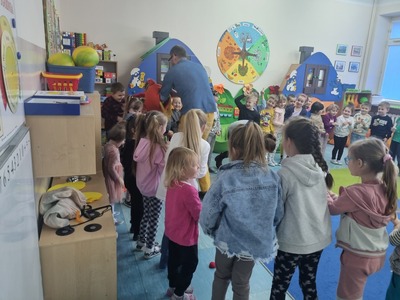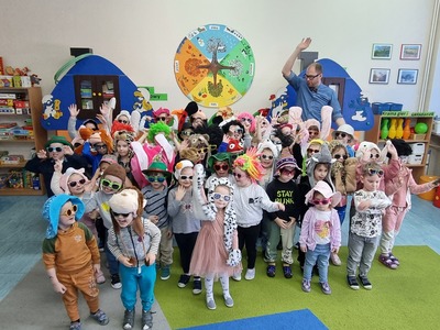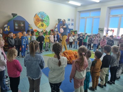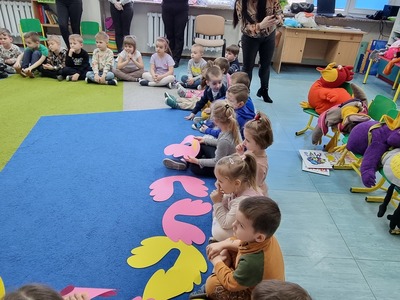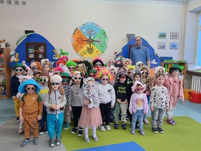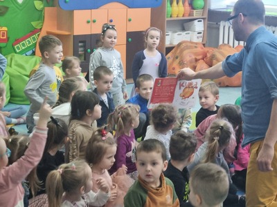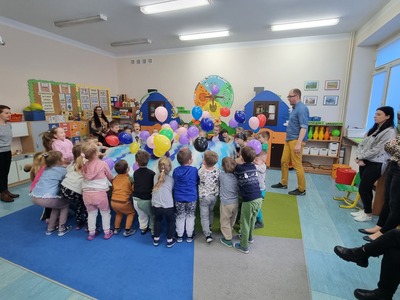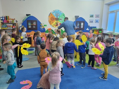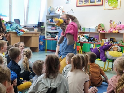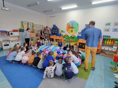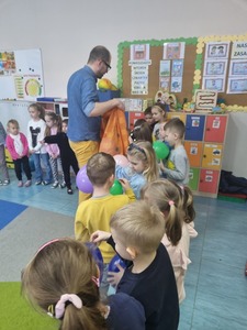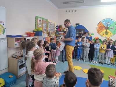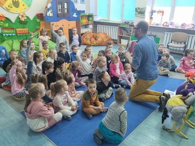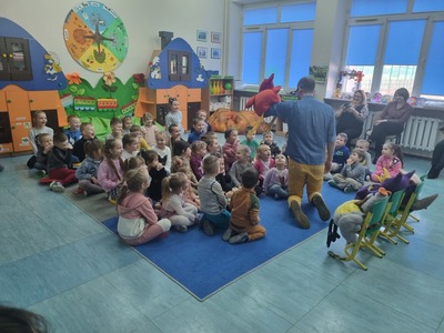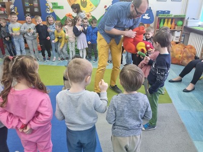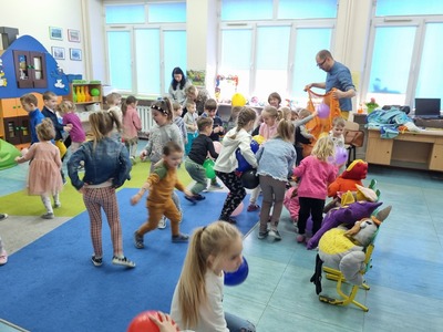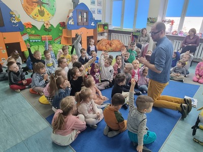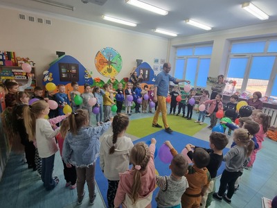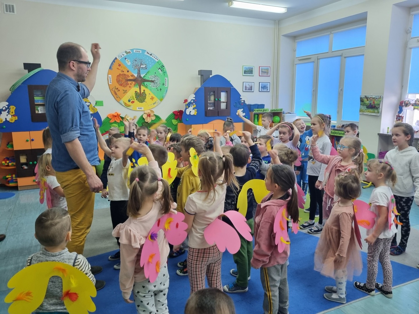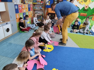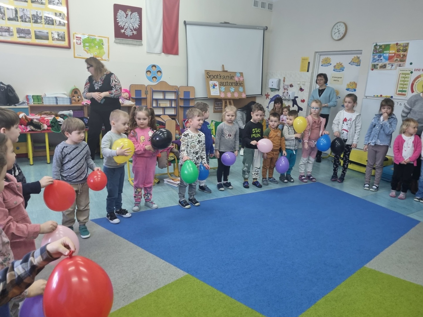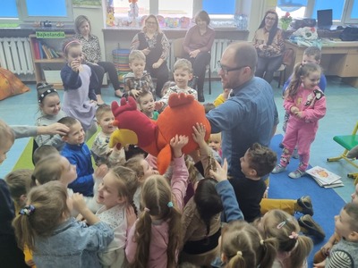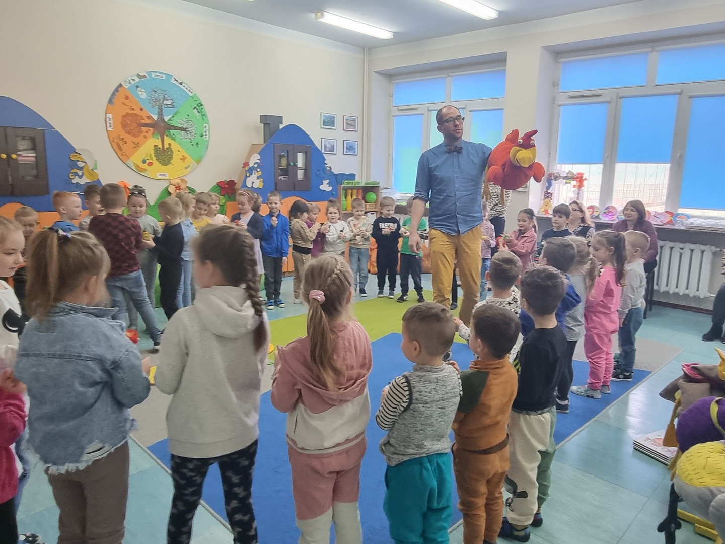 07 marca 2023 r. do naszych oddziałów przedszkolnych przybył Pan Poeta – czyli pisarz. Przybył do nas ze swoimi  pluszowymi przyjaciółmi. Podczas warsztatów odbyły się szalone zabawy z ptakostworami, ozdabianie własnych skrzydeł kolorowymi piórkami, balonowe harce i przede wszystkim wesołe wierszyki i zabawy nawiązujące do ich treści. Zajęcia te charakteryzował pełen profesjonalizm, zaangażowanie, mnóstwo pozytywnej energii. Myślę, że dla naszych przedszkolaków to niezapomniane chwile, gdyż uśmiech nie schodził im z twarzyczek. To było nasze pierwsze i na pewno nie ostatnie spotkanie z Panem Poetą.
