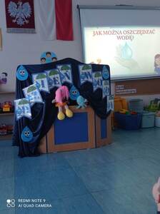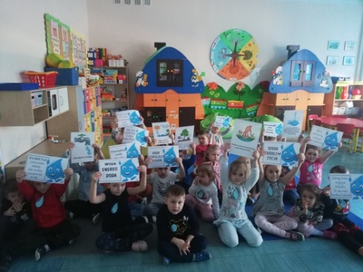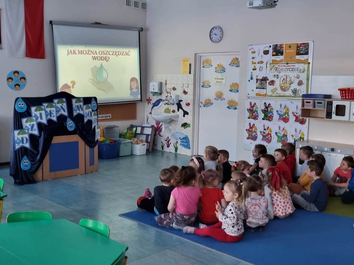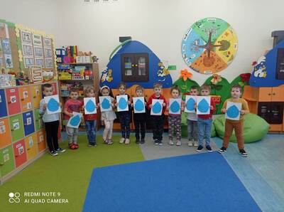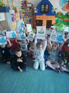 22 marca obchodzony był Światowy Dzień Wody. W piątek 31 marca obchodziliśmy ten dzień w przedszkolu w grupach słoneczek i krasnali. Konieczność ochrony zasobów przyrody stała się priorytetem dla współczesnego świata, dlatego w tym miesiącu rozmawiałyśmy z dziećmi o wodzie – jej znaczeniu dla naszej planety, a przede wszystkim o jej nadmiernym zużyciu i różnych możliwościach ograniczenia tego zużycia (zarówno w domu, jak i w przedszkolu). Podczas  zajęć przedszkolaki dowiedziały się jak oszczędzać wodę  i dlaczego jest to ważne dla naszego środowiska. Najbliższym miejscem dotknięcia wody jest oczywiście przedszkolna łazienka. Przypomnieliśmy zasady korzystania z wody podczas codziennych czynności higienicznych. Woda nie musi płynąć z kranu; jeżeli jest możliwość regulacji siły strumienia wody, kran nie musi być odkręcony „do końca”; po umyciu rąk zakręcamy kran i dopiero idziemy wycierać ręce. Nie zabrakło też różnych zabaw związanych z wodą. Dzieci oglądały przedstawienie teatralne w wykonaniu nauczycieli przedszkola pt.” Skąd się wzięła woda w mojej szafie?”. Przedszkolaki wykonały też prace plastyczne z kropelką wody w tle. Dzieci wiedzą jak wielkie znaczenie ma woda dla życia na Ziemi i dlaczego musimy ją oszczędzać. Mamy nadzieję, że  podjęte działania przerodzą  się w nawyk oszczędzania wody i każda kropelka wody będzie wielkim skarbem.