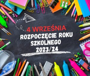 Rok szkolny 2023/24 rozpoczniemy 1 września mszą świętą w kościele o godz. 8.30. Po mszy około godziny 9.15 spotykamy się wszyscy na dziedzińcu szkolnym. Jeżeli będzie padać to w budynku szkoły. Odwozy około godz.11.30.