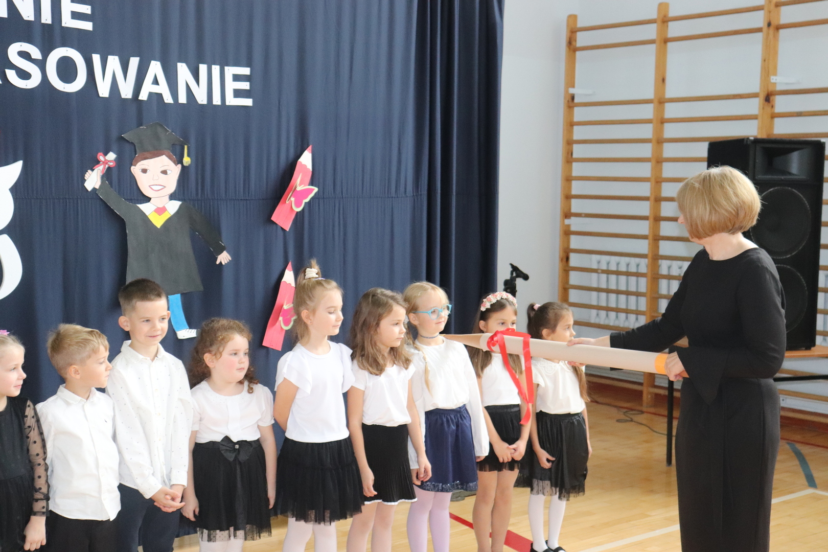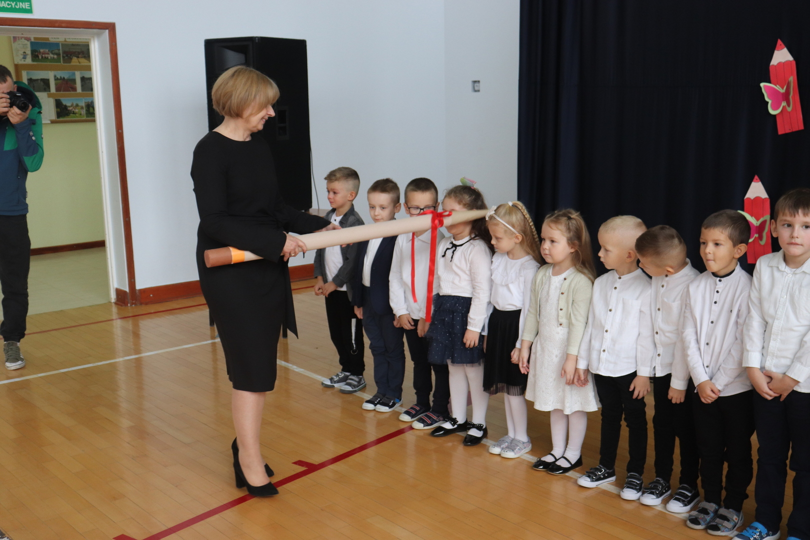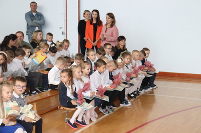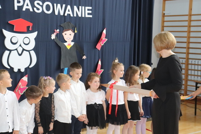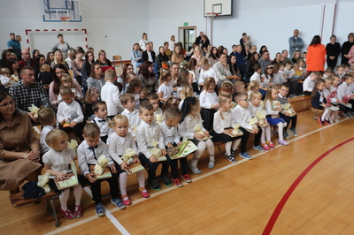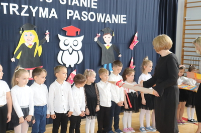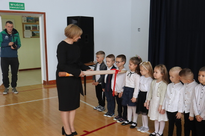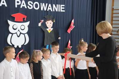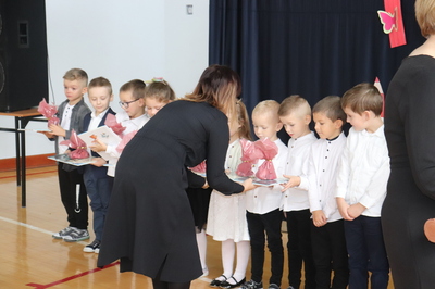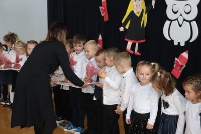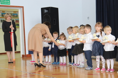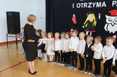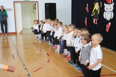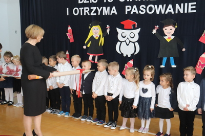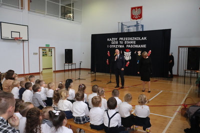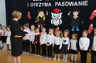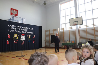 26 października 2023 r. odbyła się w naszym przedszkolu uroczystość Pasowania na Przedszkolaka. Mali artyści zaprezentowali przygotowane wiersze i piosenki. Następnie złożyli przysięgę przedszkolaka ,a pani Dyrektor Krystyna Świerczyńska dokonała aktu pasowania. Na pamiątkę tak ważnego wydarzenia dzieci otrzymały książeczki oraz słodkości. Swoją obecnością zaszczycił nas również burmistrz Miasta i Gminy Małogoszcz pan Mariusz Piotrowski, który obdarował dzieci słodkościami.
