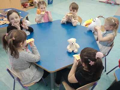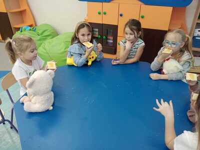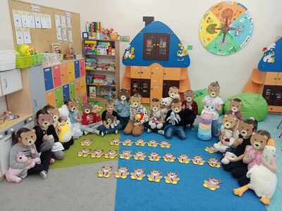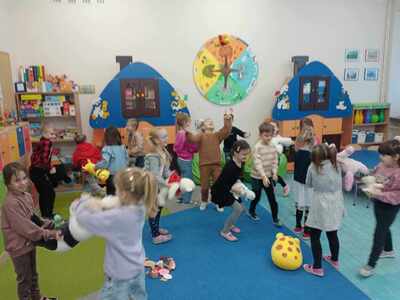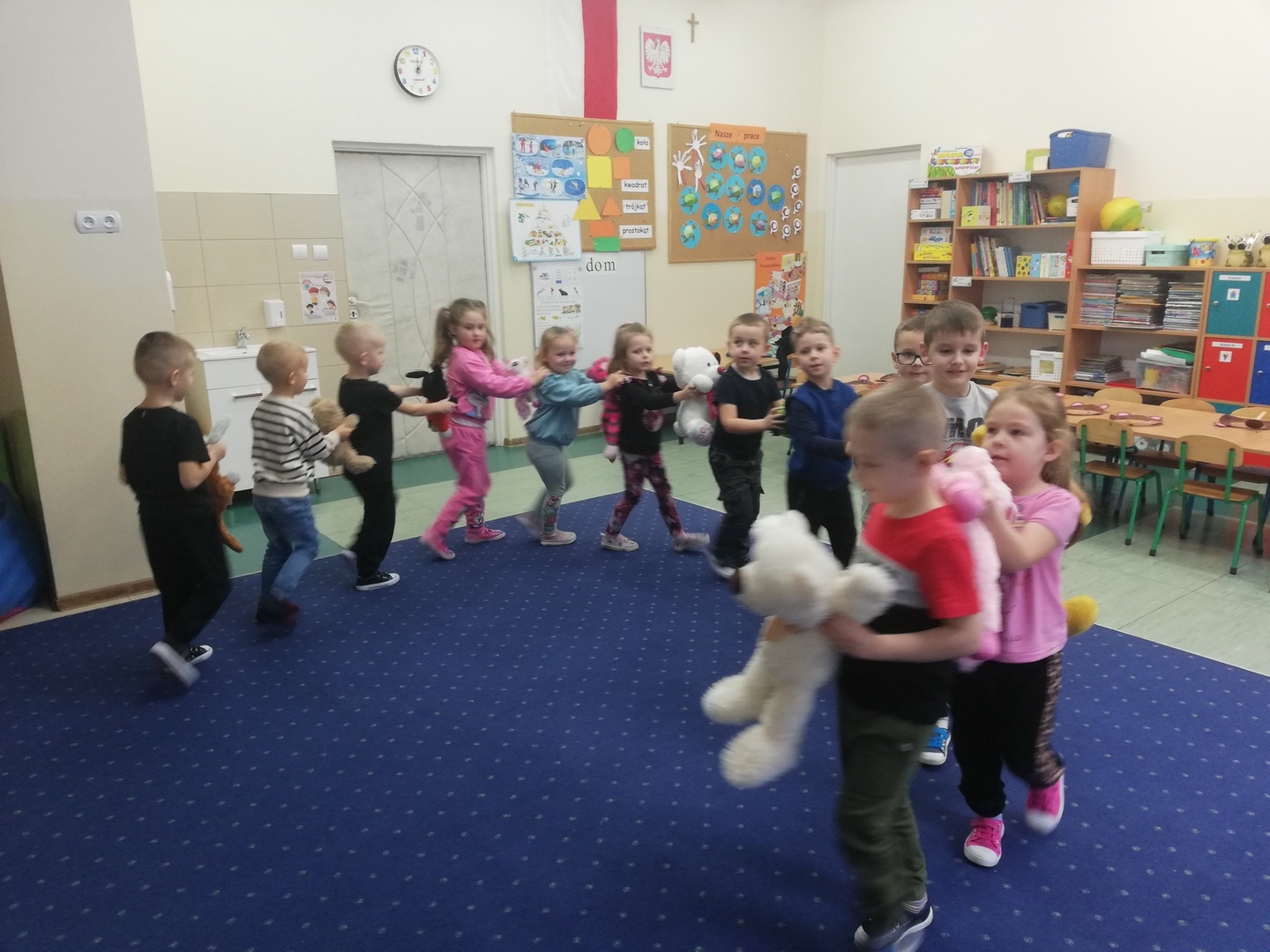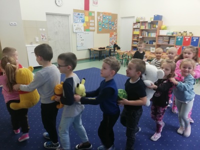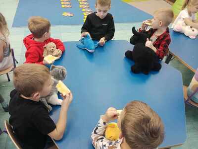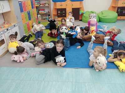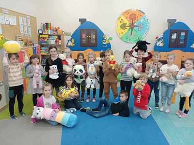 W poniedziałek, 27 listopada w Przedszkolu uroczyście obchodzono Dzień Pluszowego Misia podczas, którego każde z dzieci przyszło do przedszkola ze swoim ulubionym pluszakiem. Opowiadały, dlaczego lubią swoje pluszaki i jak się z nimi bawią oraz z jakiej bajki pochodzą. Dzieci poznały również historię Święta Misia, bawiły się przy piosenkach, a także uczestniczyły w zabawach ruchowych i zgadywankach. Poznały wiele ciekawych bajek o misiach. Wykonywały również różne prace plastyczne. Na koniec dnia przedszkolaki miały okazję spróbować najlepszego przysmaku misia miodu na plasterku wafla. Ten wyjątkowy dzień był pełen uśmiechu i świetnej zabawy. Dzieci były szczęśliwie, iż mogły spędzić tyle czasu ze swoimi pluszowymi ulubieńcami oraz pokazać ich swoim koleżankom i kolegom z grupy.