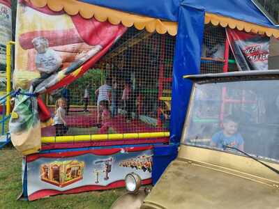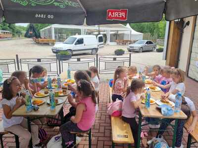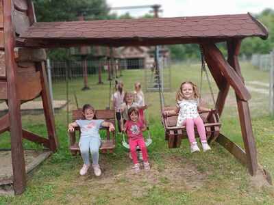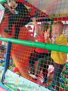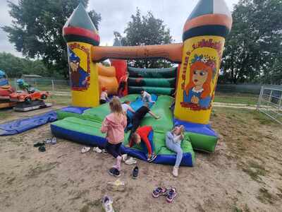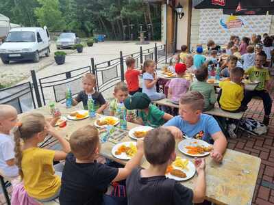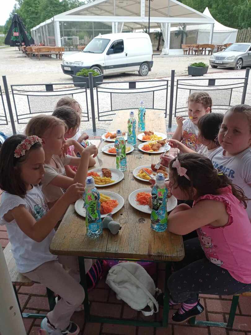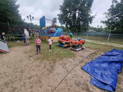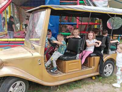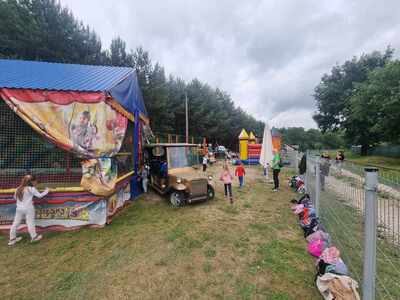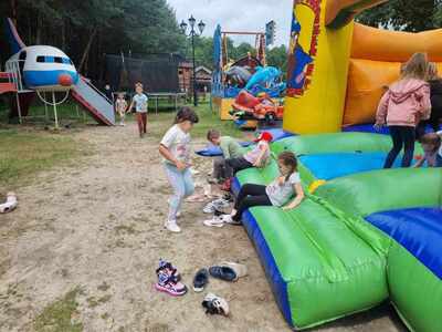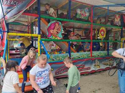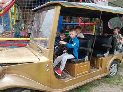 Wyczekiwanym momentem wyjazdu był pobyt w wesołym miasteczku. Dzieci miały do dyspozycji dmuchane zamki, trampoliny, tor przeszkód z wspinaczkami i kuleczkami oraz ruchomy statek. Ostatnim punktem wyjazdu był obiad.