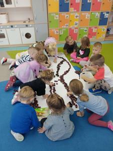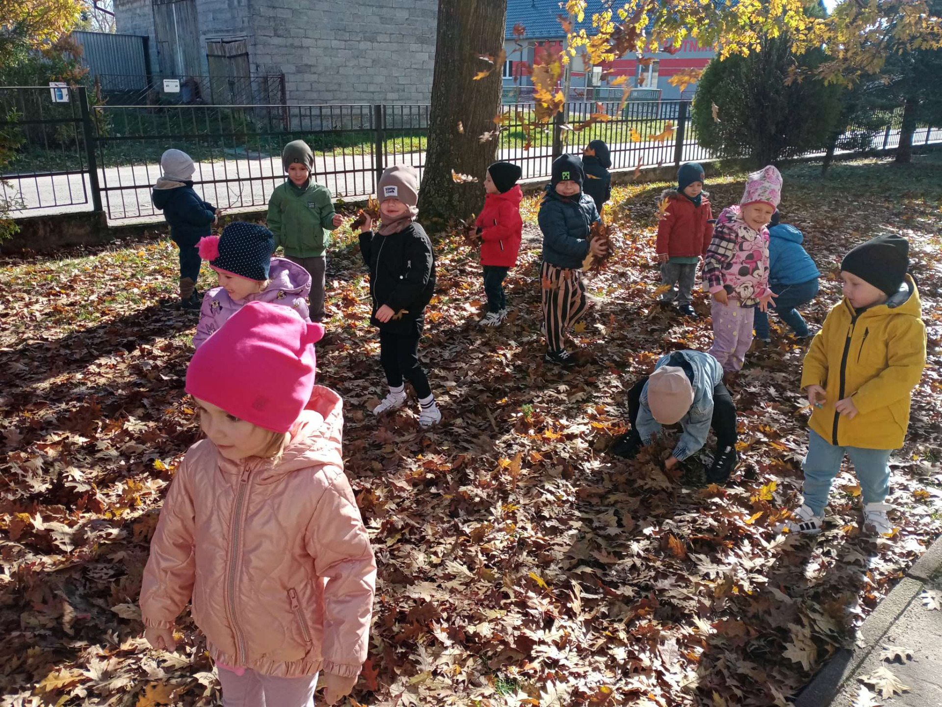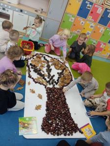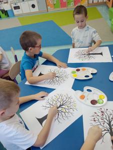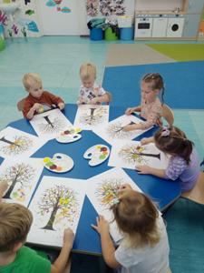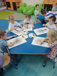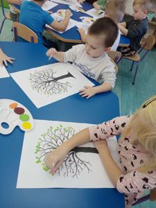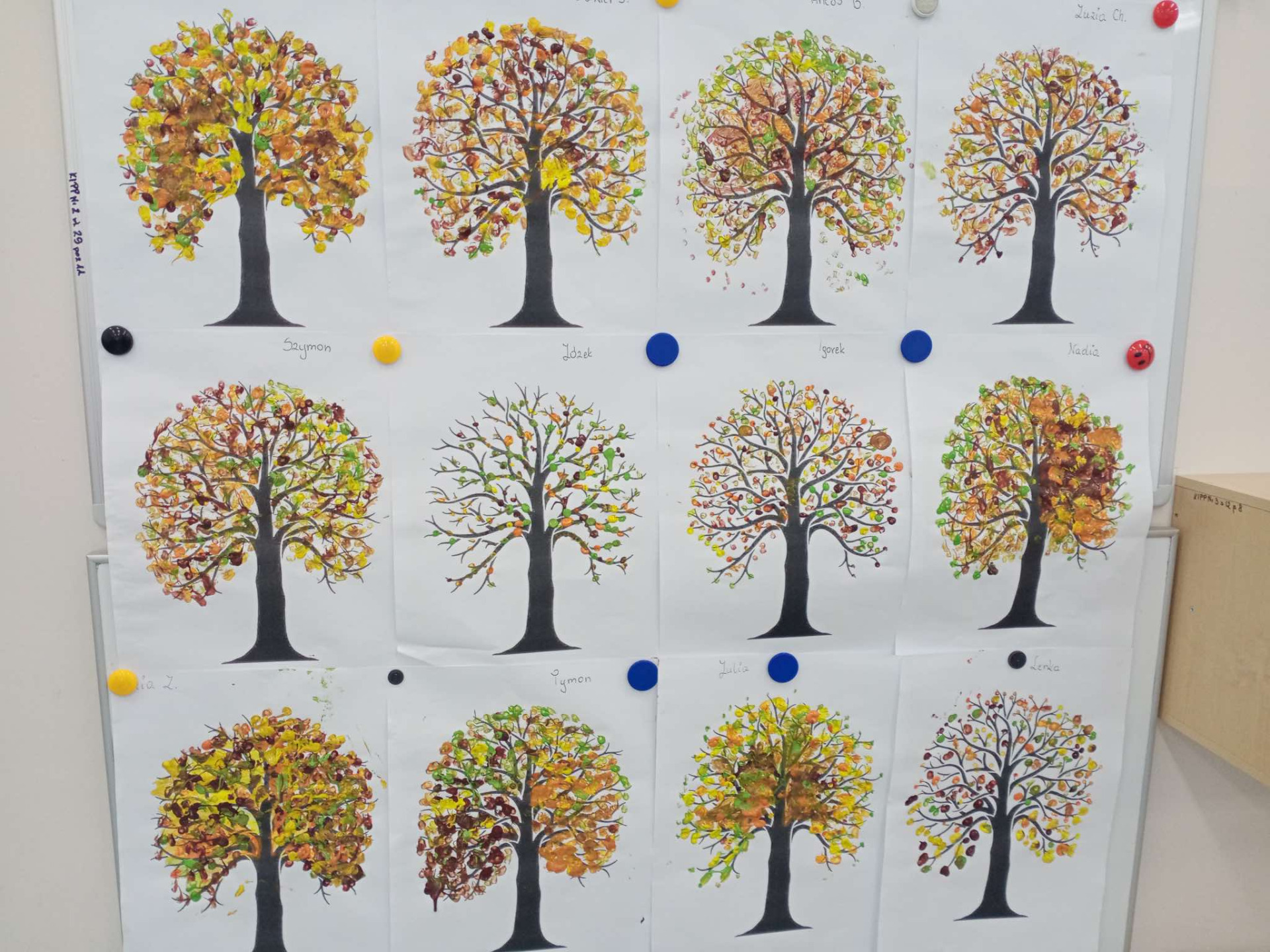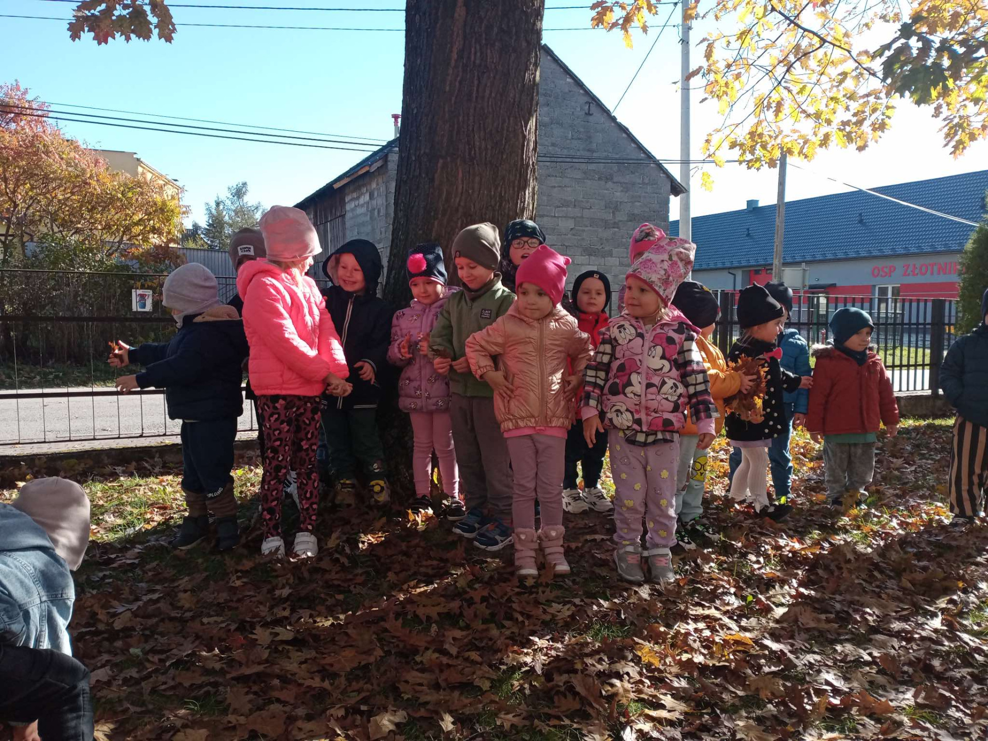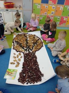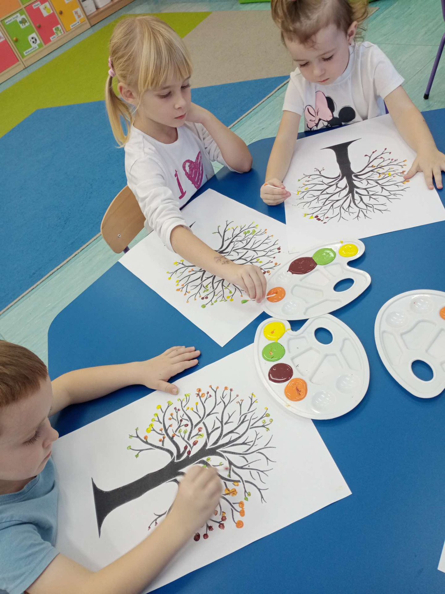 10 października dzieci z grupy „Słoneczka” obchodziły Światowy Dzień Drzewa. Tego dnia przedszkolaki poświęciły swoją uwagę i działania drzewom. Dzieci poprzez zabawę poznały rodzaje drzew , ich znaczenie dla człowieka, zwierząt i przyrody. Słoneczka wykonały wspólną pracę plastyczną „Jesienne drzewo” układając liście , kasztany, żołędzie i szyszki według własnego pomysłu. W czasie zabawy w ogrodzie przedszkolnym oglądały drzewa, dotykały ich kory, liści oraz przytulały się do nich.