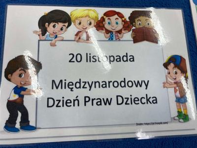 20 listopada obchodziliśmy Międzynarodowy Dzień Praw Dziecka. Przedszkolaki dowiedziały się, jakie mają prawa, ale również, oprócz praw, jakie mają obowiązki. Każdemu dziecku, niezależnie od koloru skóry, wyznania czy pochodzenia, przysługują takie same prawa - prawa dziecka .Obejrzały również filmy edukacyjne i prezentacje w tej tematyce, kolorowały ilustracje z wybranymi przez siebie prawami oraz wspólnie ułożyły plakat przedstawiający omawiane prawa.
