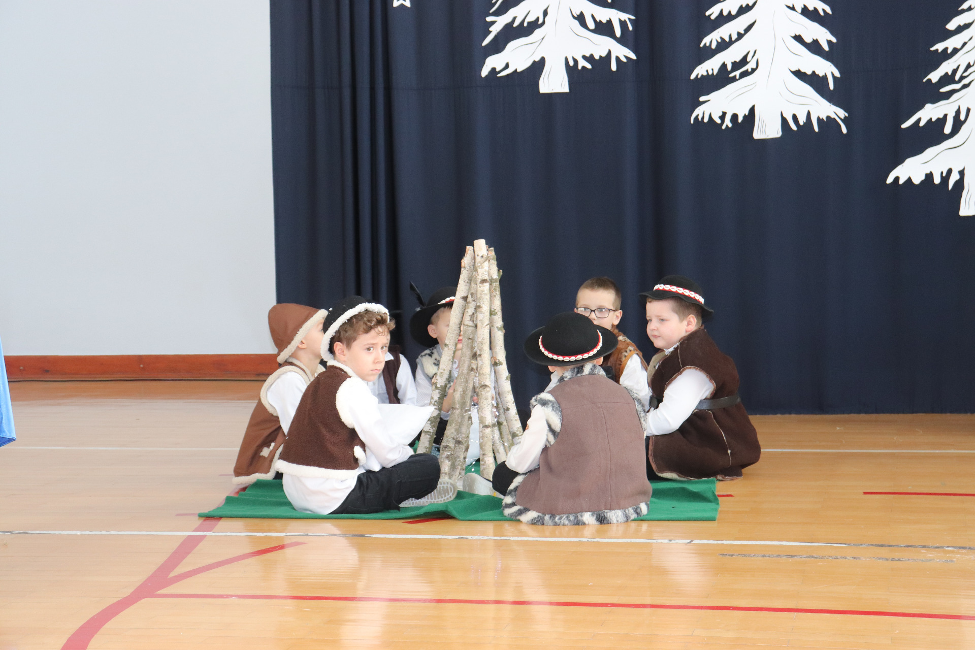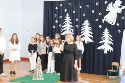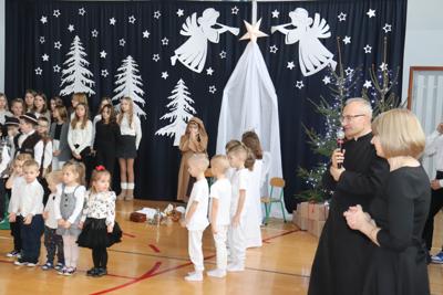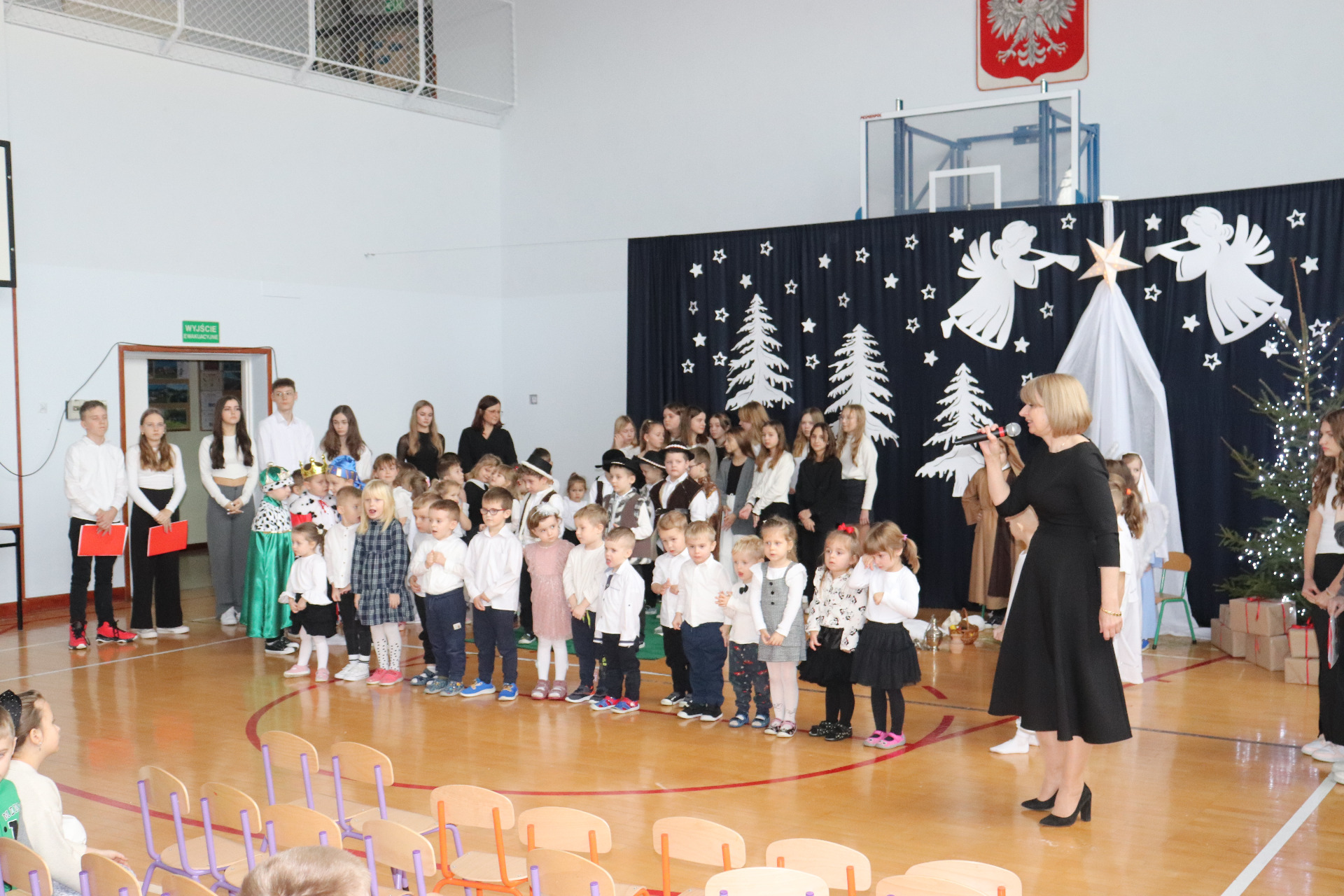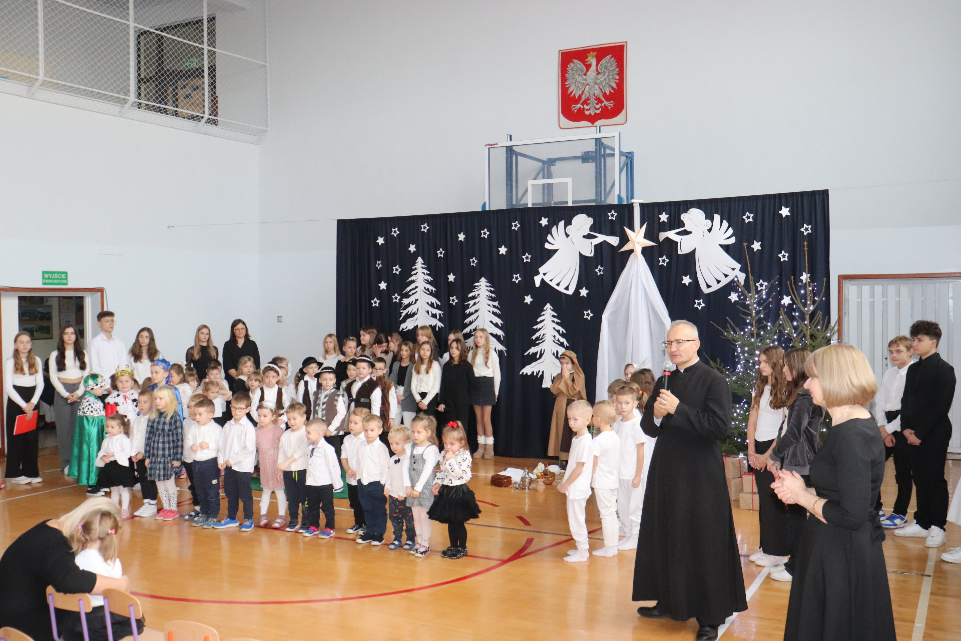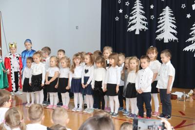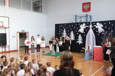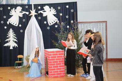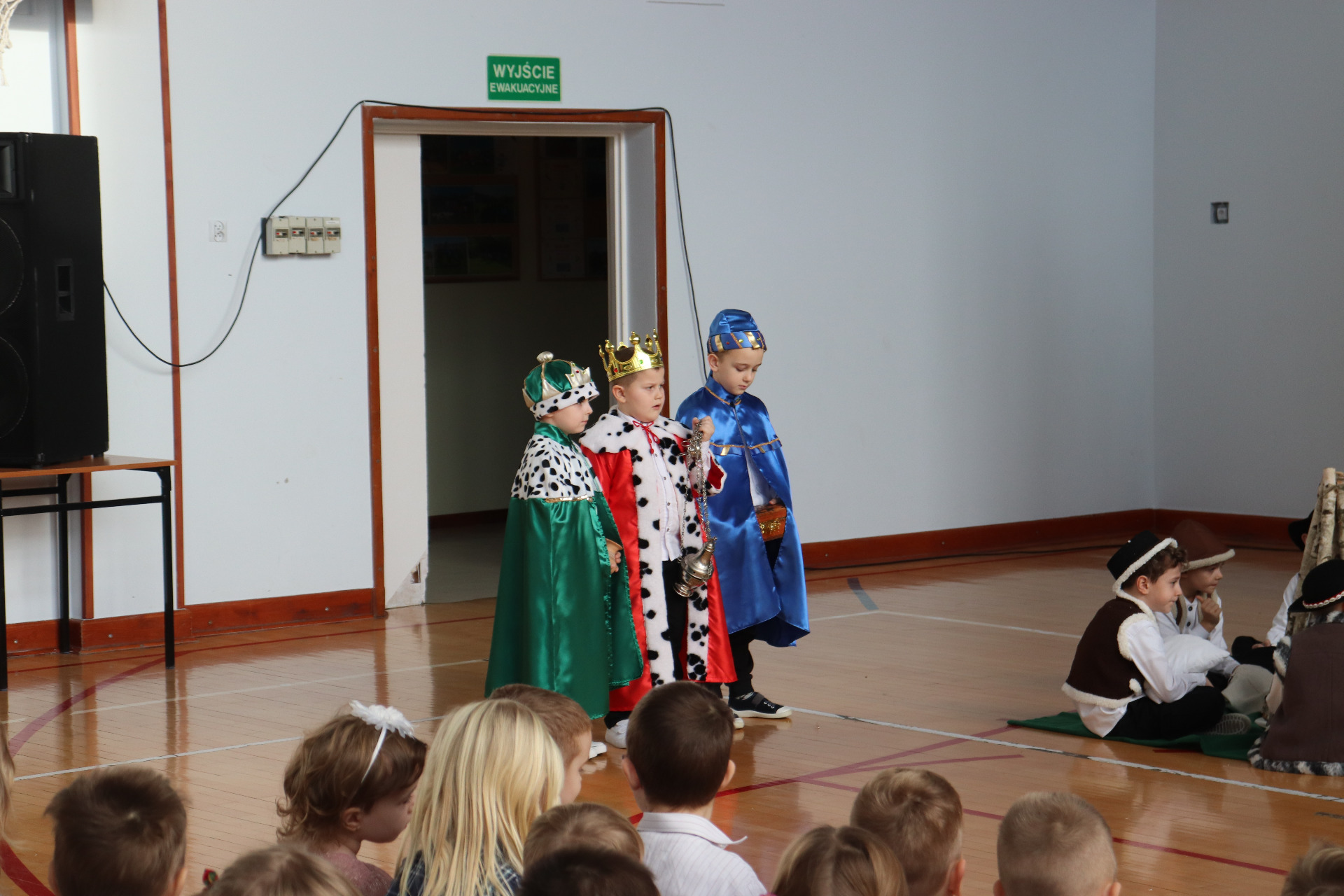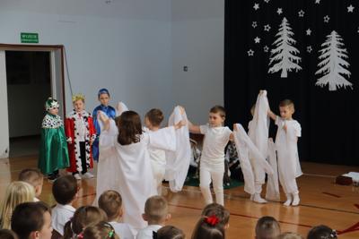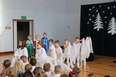 Wigilia Bożego Narodzenia to jeden z najpiękniejszych dni w roku, dlatego tradycją naszego przedszkola jest przygotowanie i wystawienie w okresie przedświątecznym Jasełek. Przedstawienie jasełkowe w wykonaniu przedszkolaków wprowadziły całą społeczność przedszkolną i szkolną w świąteczny i magiczny czas. Świąteczny nastrój podkreślały niecodzienne stroje dzieci, bożonarodzeniowa dekoracja sceny – stajenka z Józefem , Maryją  i Dzieciątkiem. Mali aktorzy z wielkim przejęciem wygłaszali swoje role i z radością śpiewali kolędy i pastorałki. Najstarsza grupa zaprezentowała również taniec w białych strojach do pastorałki „Mario czy ty wiesz…”