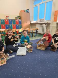Dziękujemy rodzicom za wielkie zaangażowanie się w wykonanie przepięknych karmników oraz przyniesione smakołyki dla ptaków.