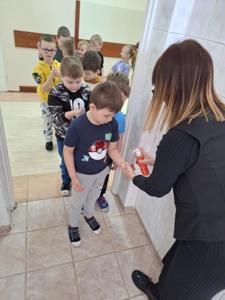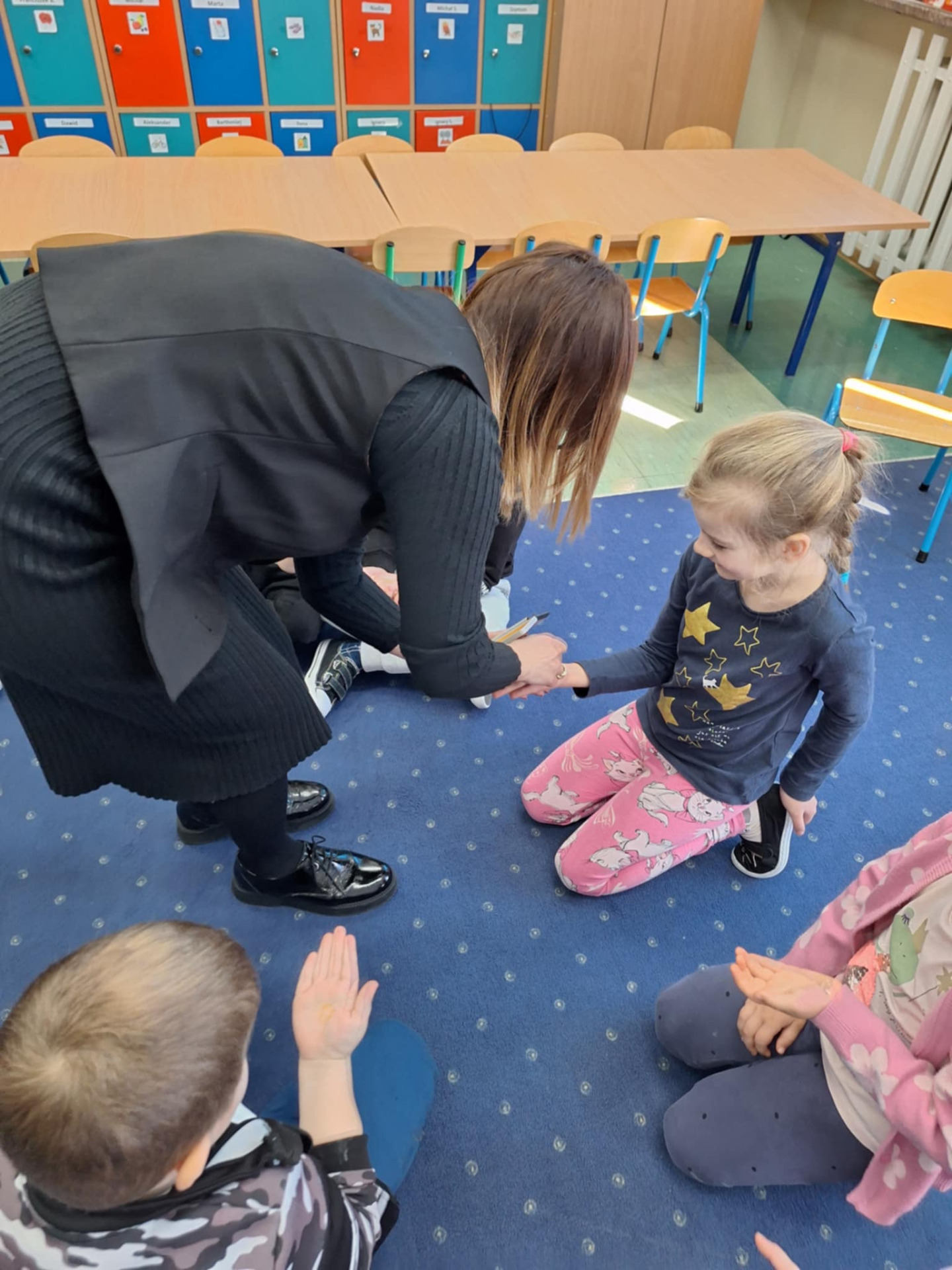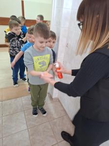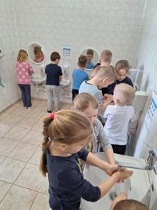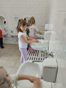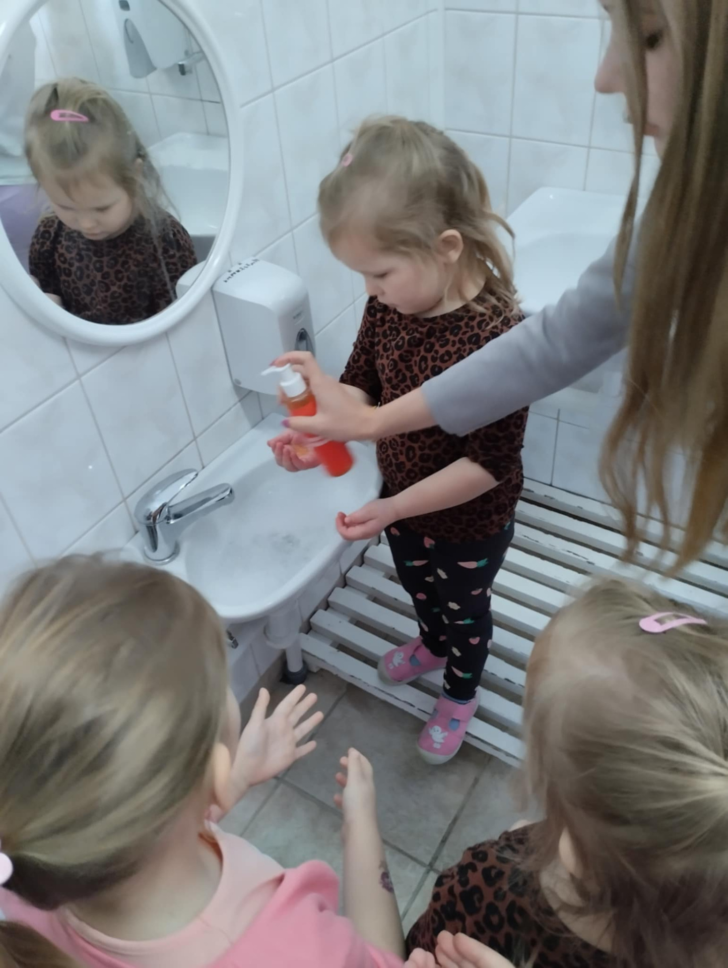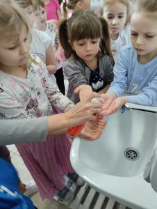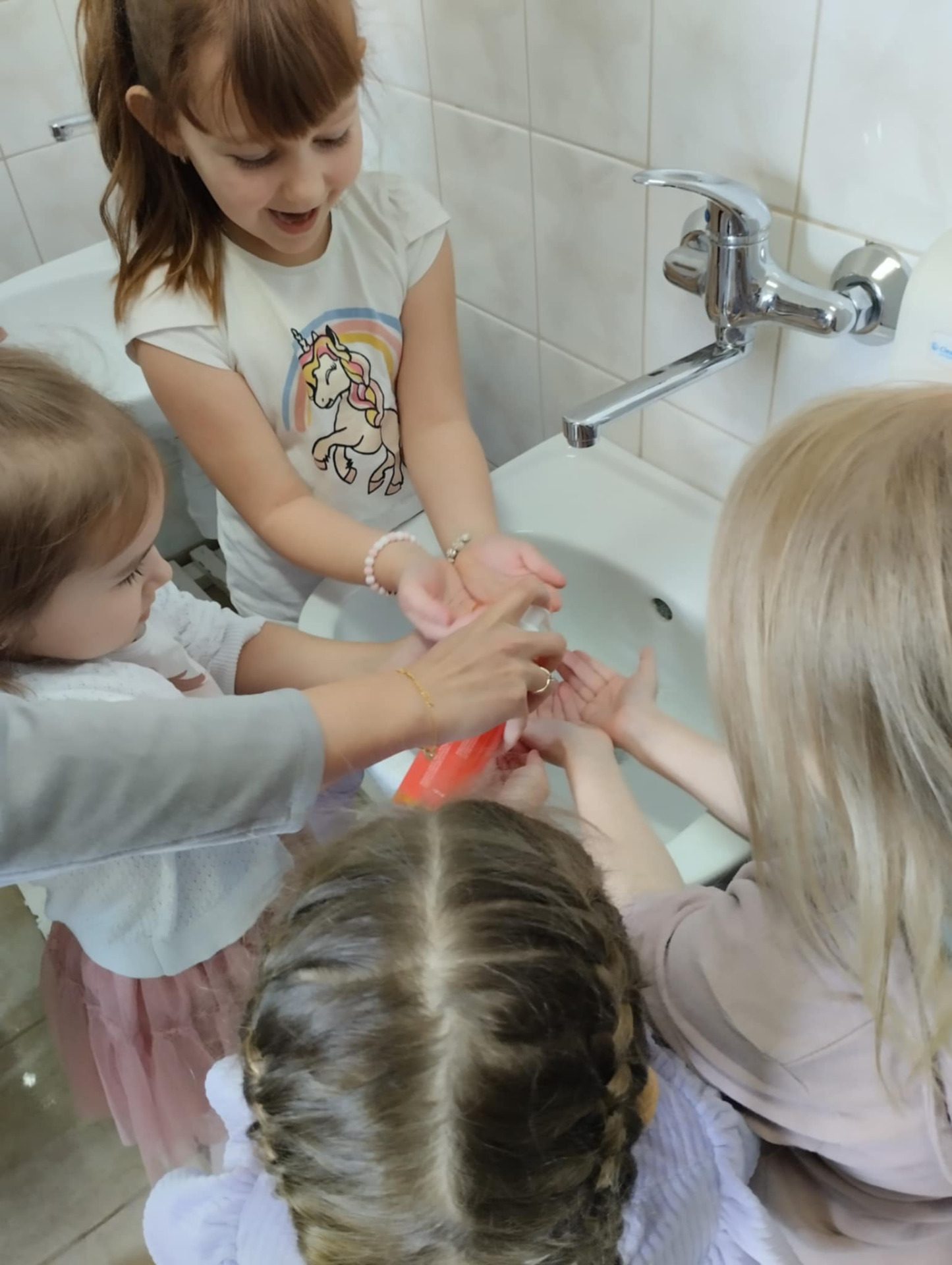 Nasze Przedszkole wzięło udział w programie edukacyjnym Przedszkola Bez Owsików. Celem programu jest kształtowanie odpowiednich nawyków w zakresie dbania o czystość rąk wśród dzieci. W ramach programu przedszkolaki wzięły udział w zajęciach edukacyjnych, które w ciekawy i zrozumiały sposób pokazały, jak ważne jest dbanie o czyste ręce w kontekście naszego zdrowia. Przedszkolaki obejrzały prezentację multimedialną, ukazującą proces zarażania się owsikami oraz zasady, których należy przestrzegać, aby owsiki się nie rozpowszechniały, następnie poznając techniki prawidłowego mycia rąk, dzieci miały za zadanie zmyć „owsika – pieczątkę”, ze swojej dłoni, zwracając uwagę na stosowanie odpowiednich środków, które pokonają owsiki. Na zakończenie zajęć, przedszkolaki, pokolorowały kolorowanki zatytułowane „ Kiedy należy myć ręce?”