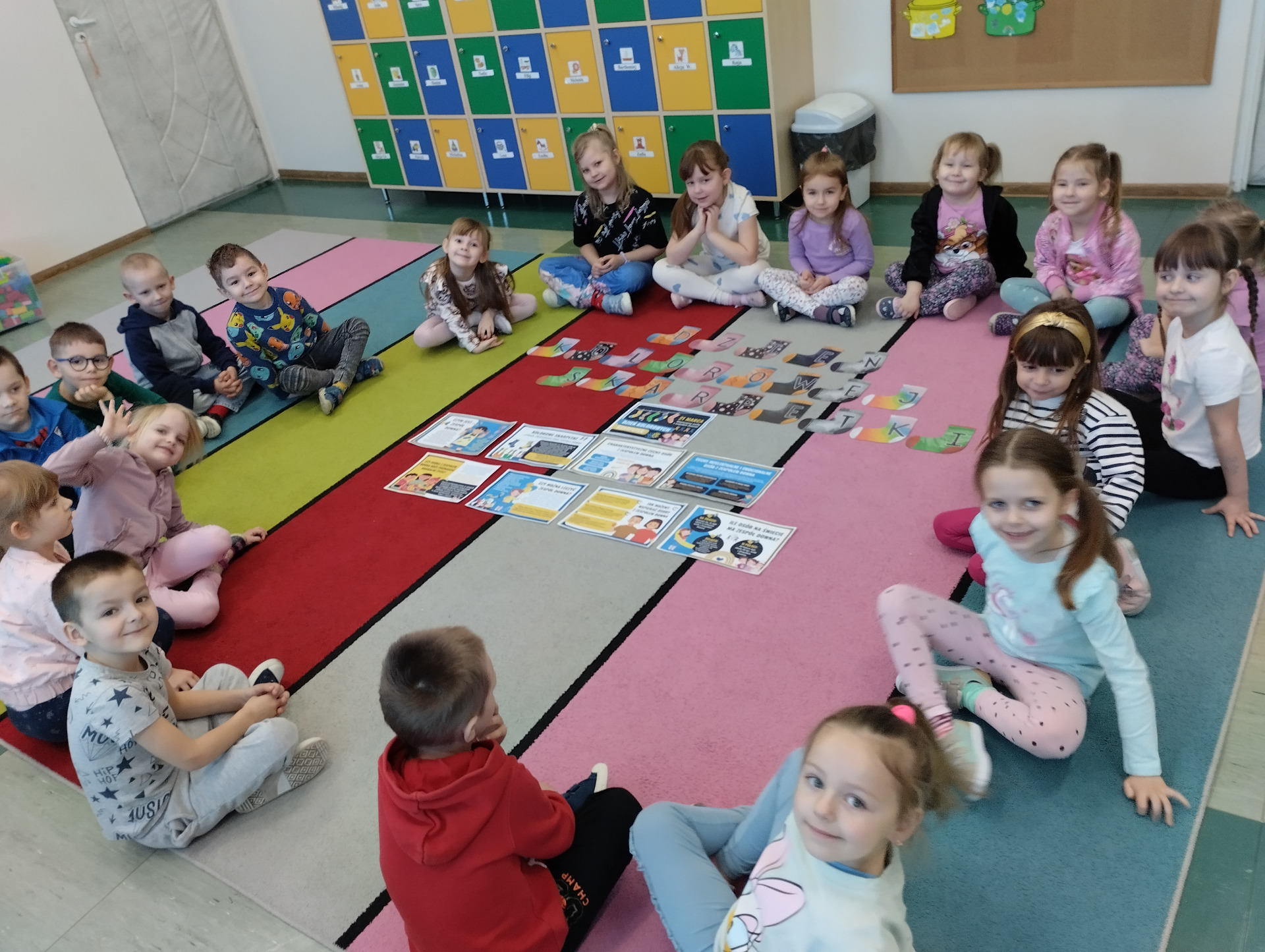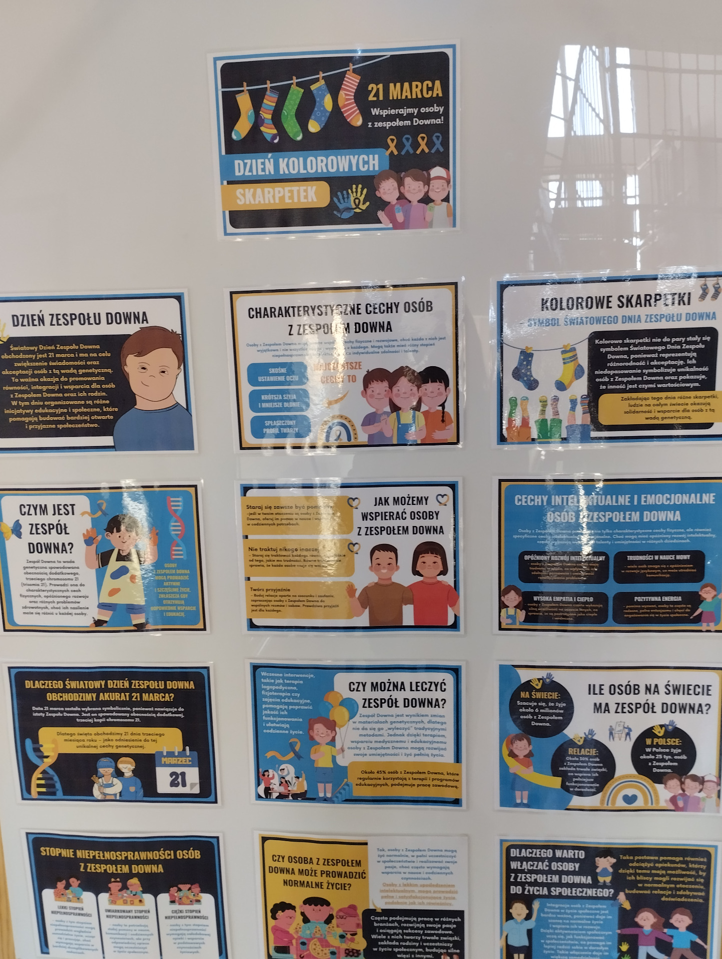 20 marca w naszym przedszkolu grupa Misie włączyła się w obchody tego dnia jako wyraz akceptacji, zrozumienia, tolerancji dla osób z Zespołem Downa. W tym dniu przedszkolaki ubrały skarpetki nie do pary. Obejrzały film edukacyjny dotyczący osób z tą wadą, wykonywały wiele ćwiczeń matematycznych, przeliczały, segregowały, śpiewały piosenki oraz zrobiły prace plastyczne. Dzieci z wielkim zainteresowaniem słuchały informacji o Zespole Downa. Przedszkolaki rozumieją potrzebę wspierania i akceptowania osób obciążonych tą wadą genetyczną.