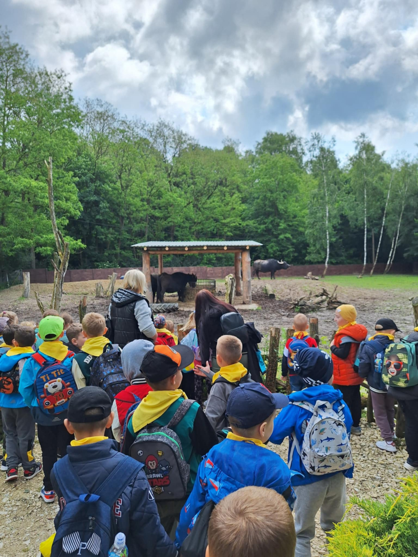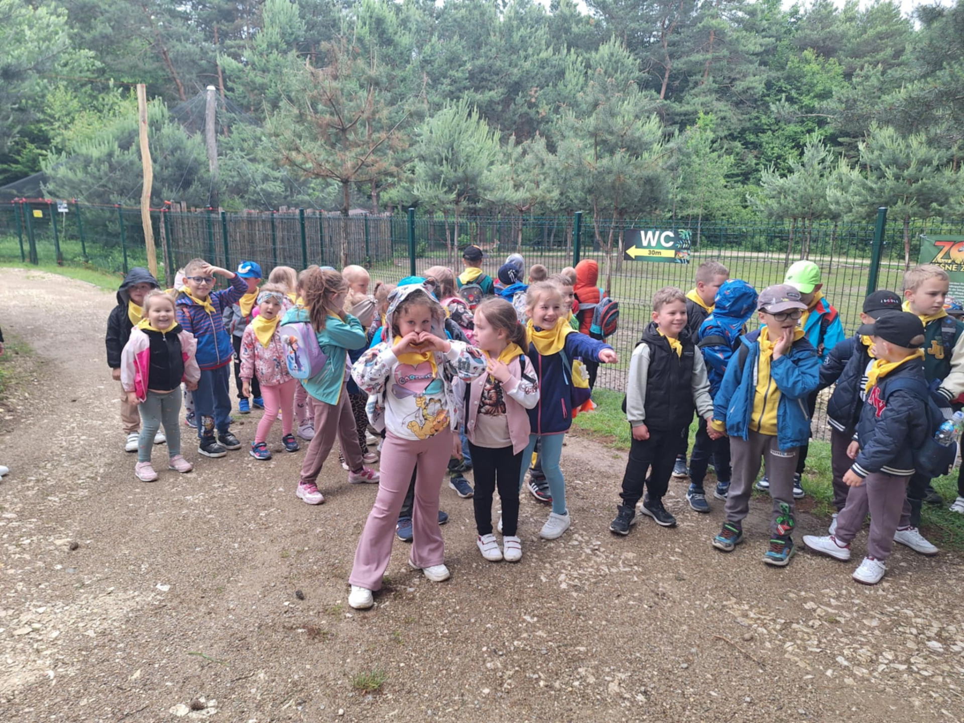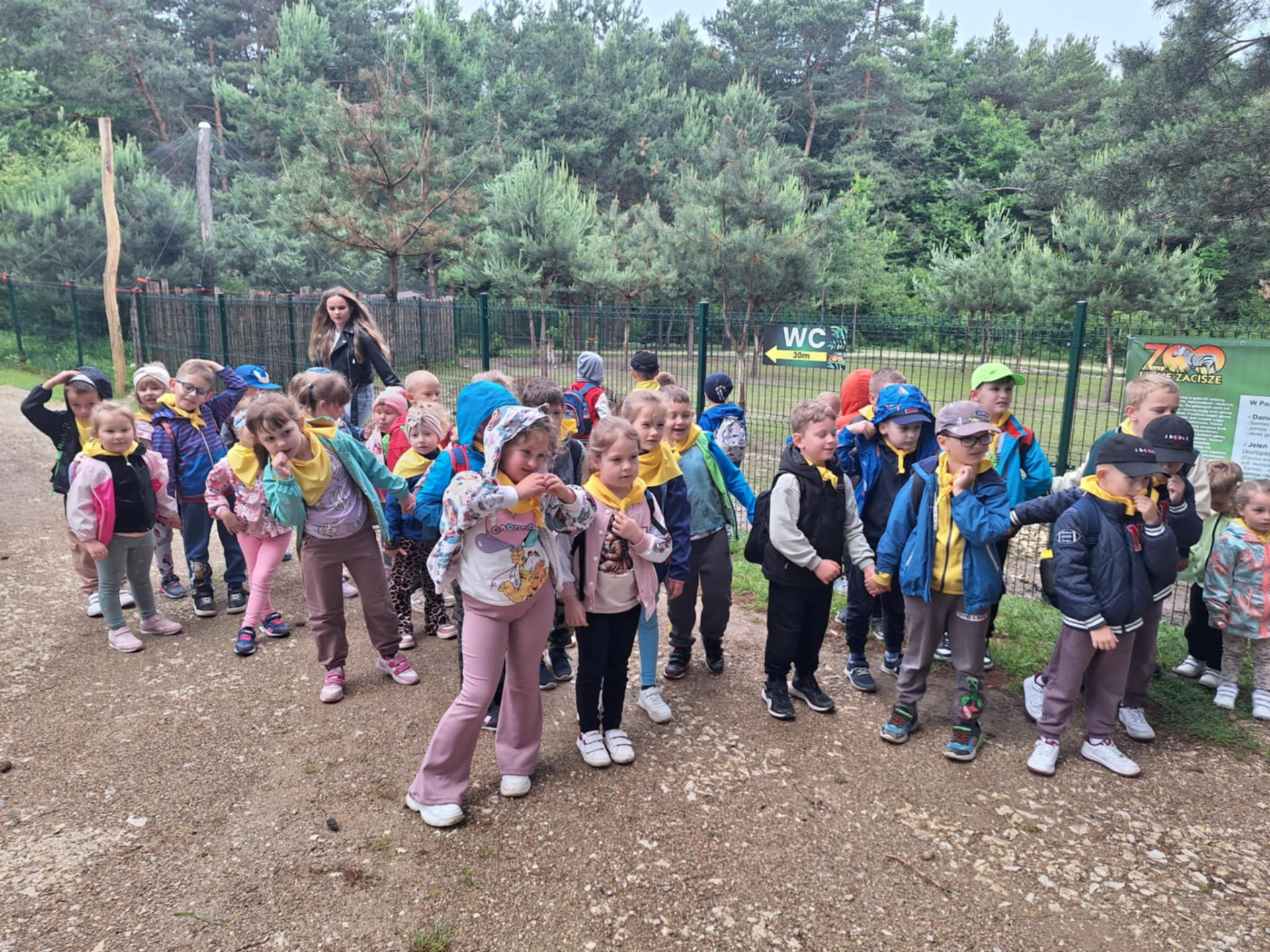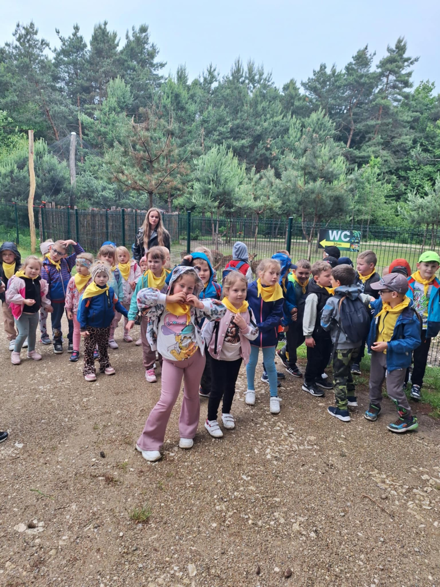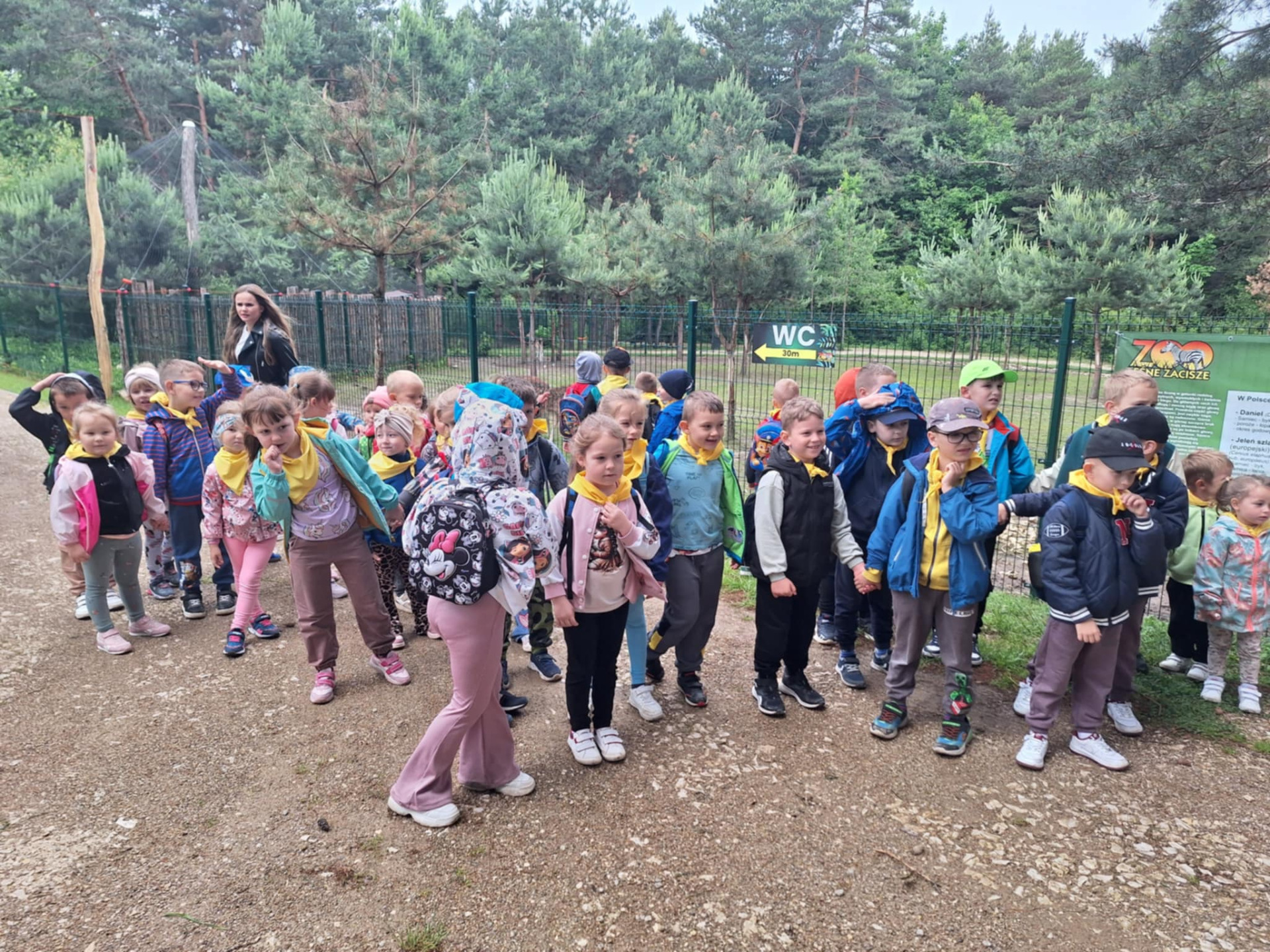 Dnia 11 czerwca 2025r. roku przedszkolaki wraz z opiekunami wybrały się na wycieczkę autokarową do ZOO ,,Leśne Zacisze”, które mieści się na malowniczo położonym terenie otoczonym lasem w miejscowości Lisów. Celem wycieczki było wzbogacenie wiadomości na temat zwierząt zamieszkujących ZOO, kształtowanie świadomości przyrodniczej i emocjonalnej więzi z przyrodą. Podczas spaceru alejkami ZOO dzieci miały okazję zobaczyć niespotykane na co dzień zwierzęta pochodzące z różnych kontynentów m.in. zebry, strusie afrykańskie, daniele, osły, kozy, owce, lamy, wielbłądy, żółwie, szopy pracze, kuce szetlandzkie, konie oraz różnego rodzaju dzikie i kolorowe ptactwo z pięknymi pawiami na czele, które przechadzały się dumnie wśród dzieci. Największą atrakcją był lew, który niestety spał i nie wykazywał zainteresowania naszą obecnością! Po zwiedzeniu ZOO dzieci udały się na ogromny plac zabaw, gdzie miały do dyspozycji trampoliny, zjeżdżalnie, park linowy itp. Na zakończenie tego niesamowitego dnia dzieci miały mały poczęstunek w postaci frytek. Wycieczka okazała się nie tylko wspaniałym przeżyciem, ale również atrakcyjnymi zajęciami z zakresu przyrody. W drodze powrotnej pomimo zmęczenia dzieciom dopisywały humory.