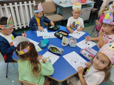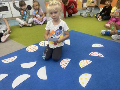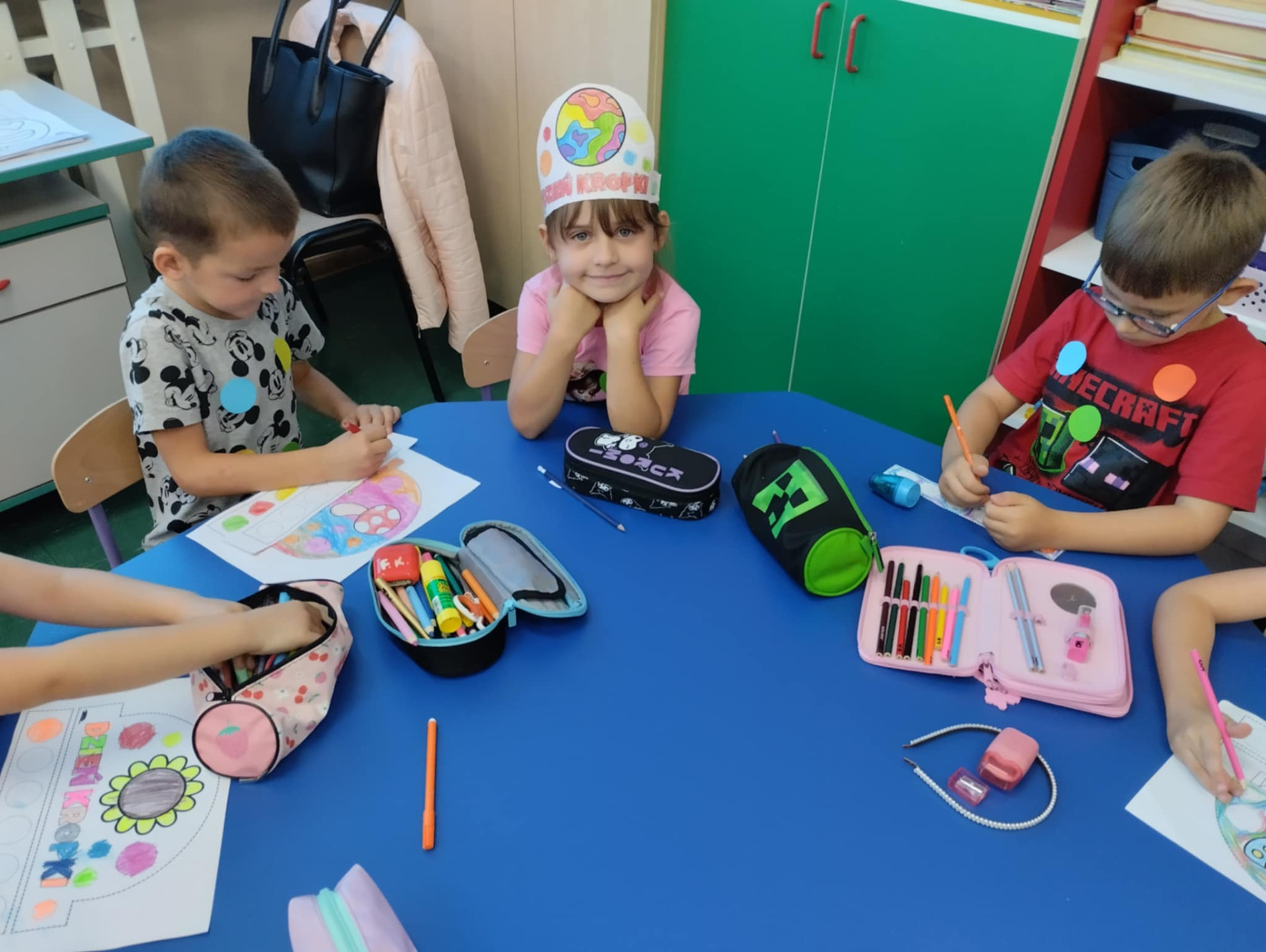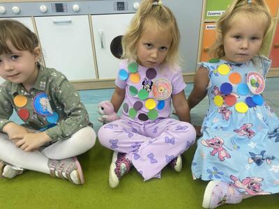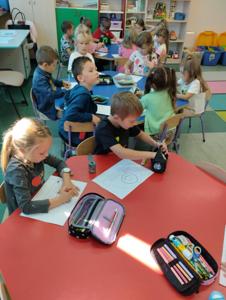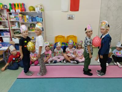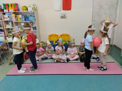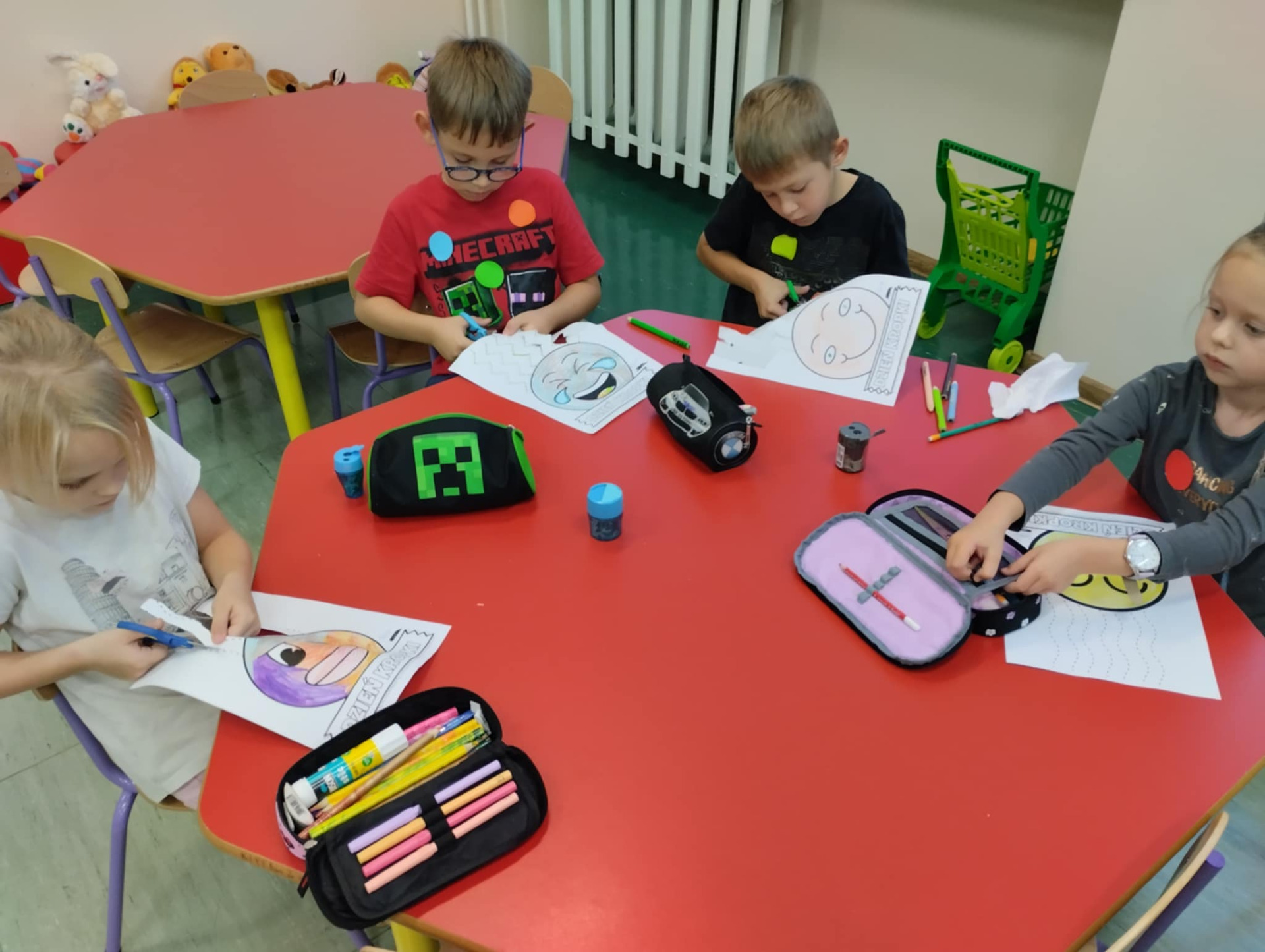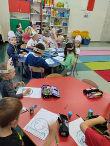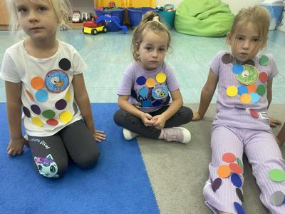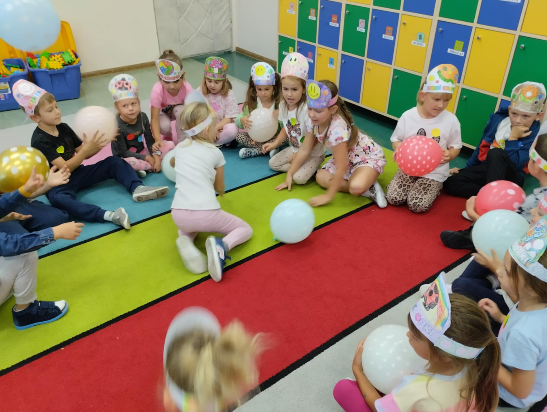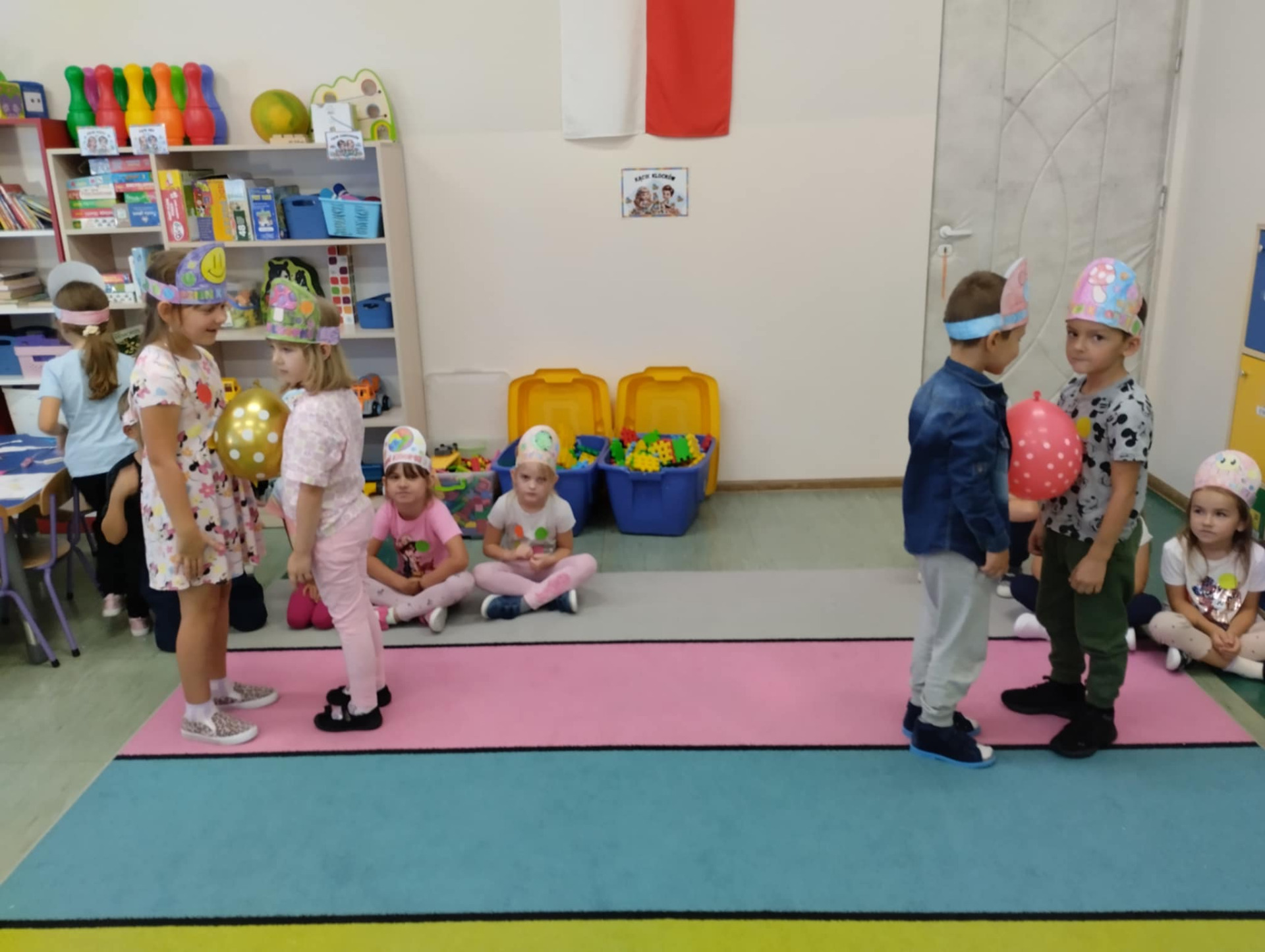 Dzieci tego dnia przystroiły się w kolorowe kropki oraz chętnie uczestniczyły w zabawach i zadaniach, oczywiście z kropką w roli głównej. Wspólnie odkryliśmy, że kropki towarzyszą nam dookoła w naszym codziennym życiu, nawet na naszym ciele i u zwierząt. Dzieci wymyślały co może powstać  z kropki, tworzyły ciekawe prace plastyczne. Wspólnie liczyliśmy, segregowaliśmy kolorowe kropki i bawiliśmy się z kropkami przy muzyce.