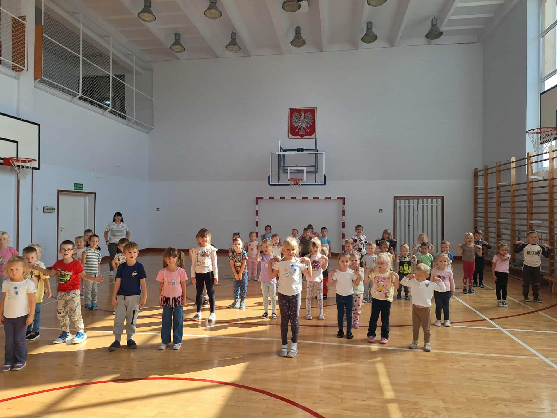 26 września obchodziliśmy w naszym przedszkolu Międzynarodowy Dzień Sportu. Ten dzień był okazją do zdrowej aktywności, rozwijania zainteresowań sportowych oraz przypomnienia nazw dyscyplin letnich i zimowych. Zmagania sportowe rozpoczęliśmy od rozgrzewki. Podczas konkurencji sportowych dzieci musiały się wykazać zwinnością, skocznością oraz celnością w czasie pokonywania torów przeszkód. Każde prawidłowo wykonane ćwiczenie budziło w nich ogromną radość i zadowolenie z dobrze wykonanego zadania.