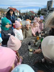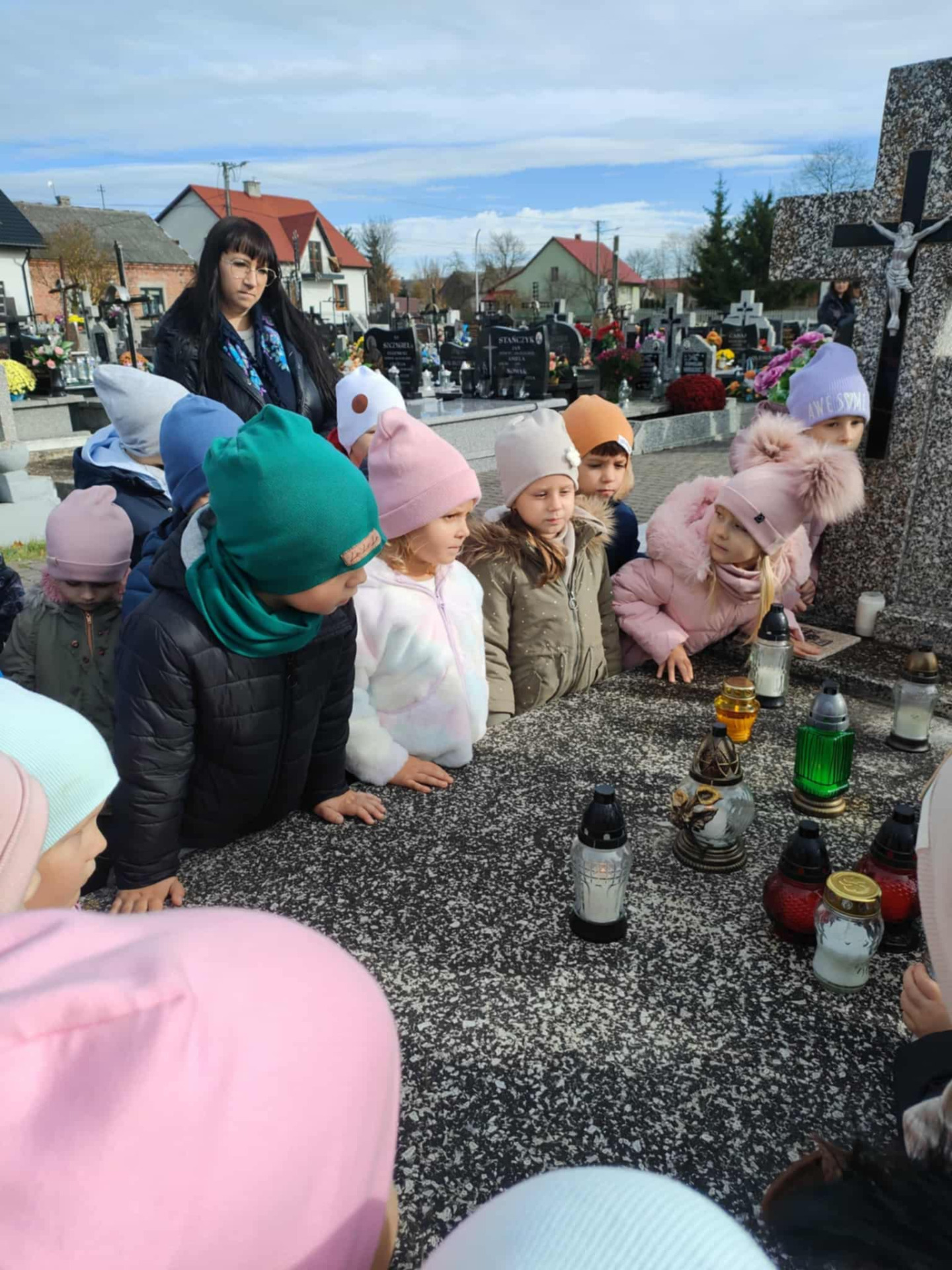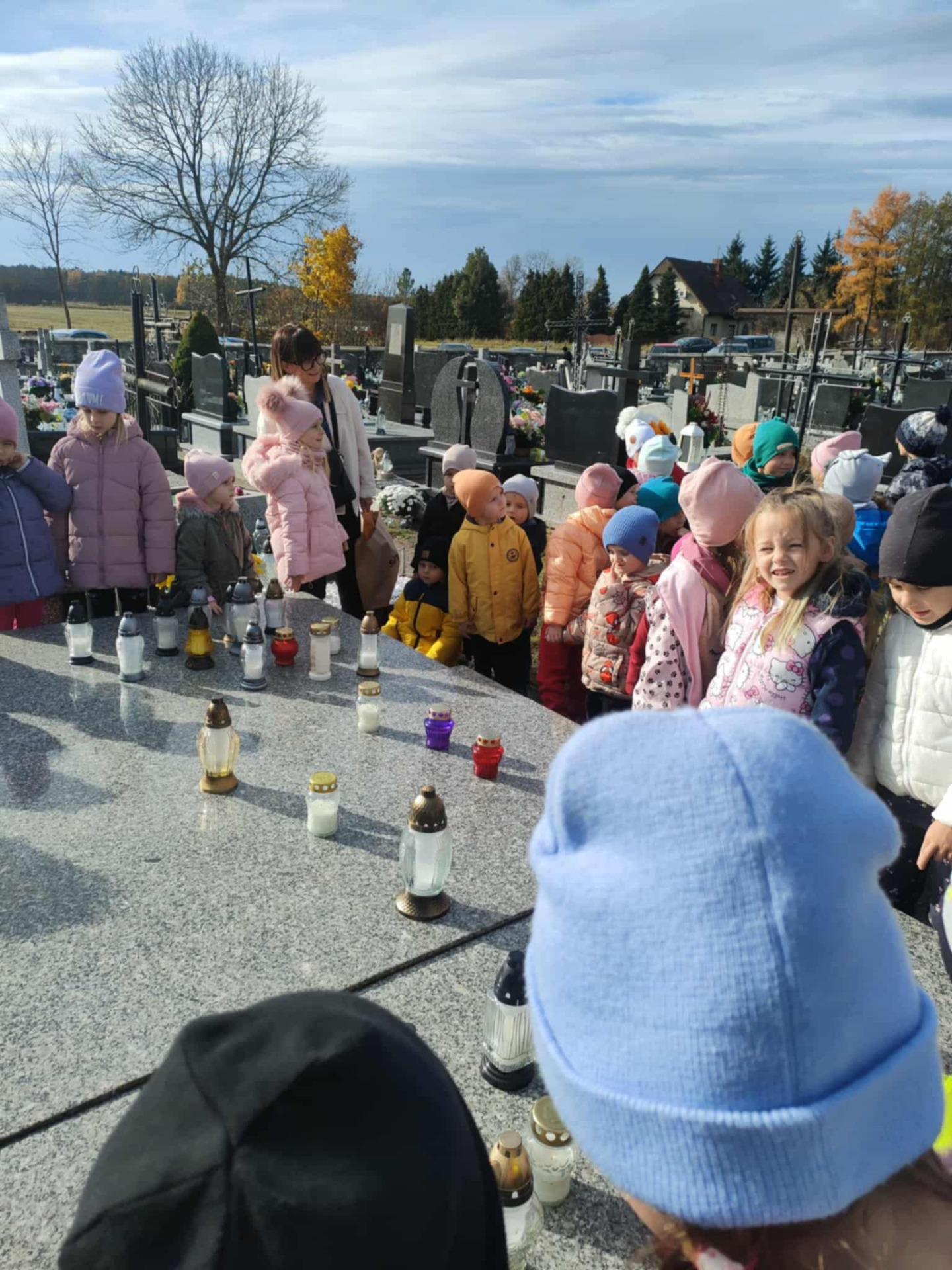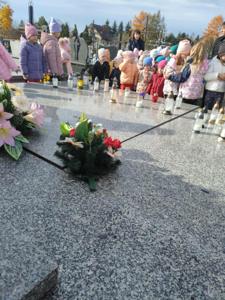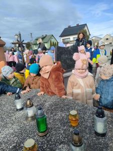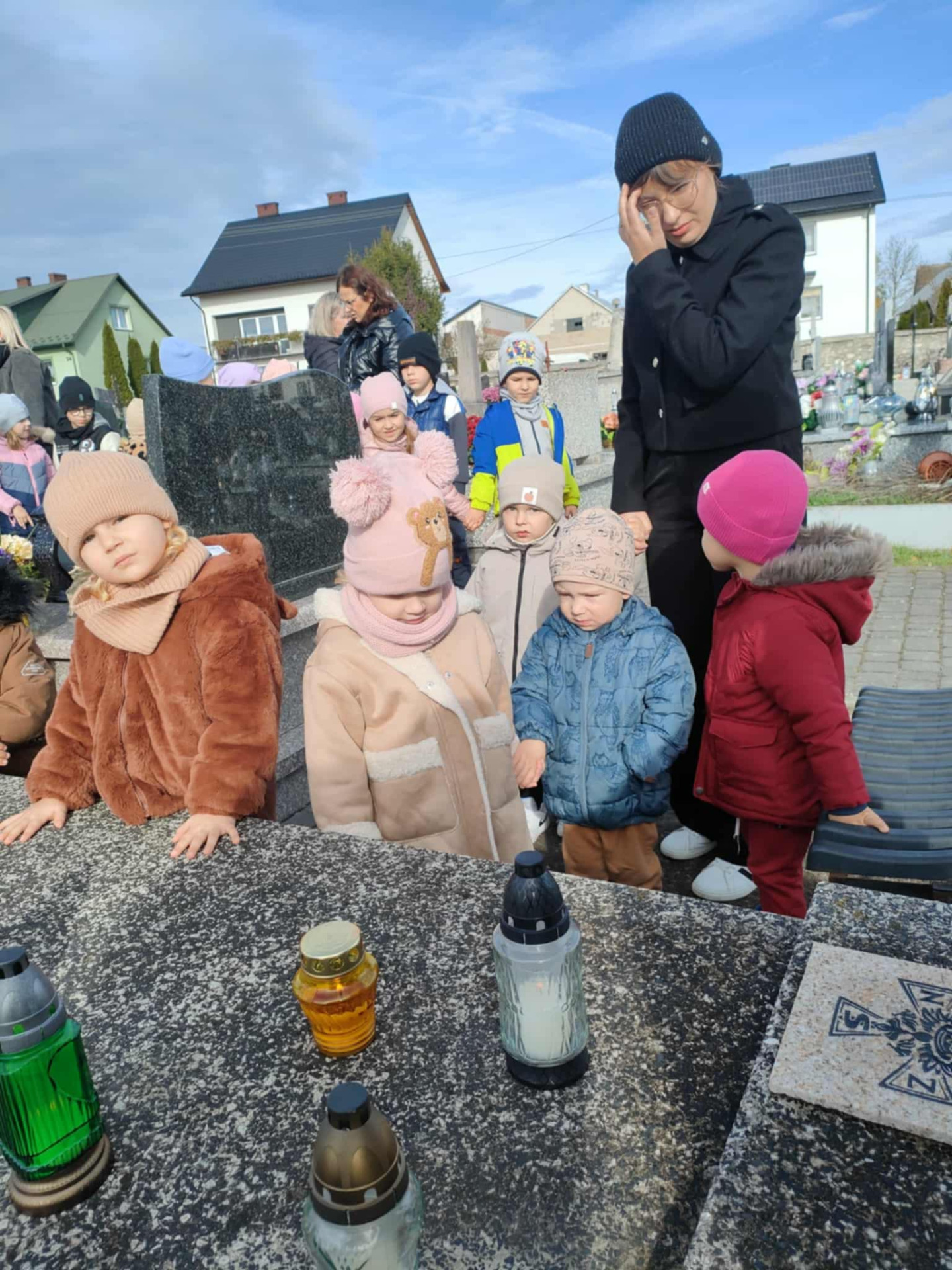 W dniu 30 października 2025 roku przedszkolaki wraz z wychowawczyniami wybrały się na cmentarz, aby uczcić pamięć zmarłych.